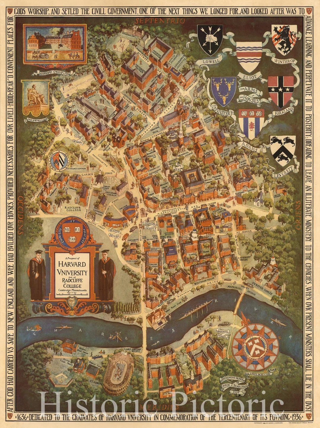Historic Map : Schruers Pictorial Map of Harvard University, 1935, Vintage Wall Art
