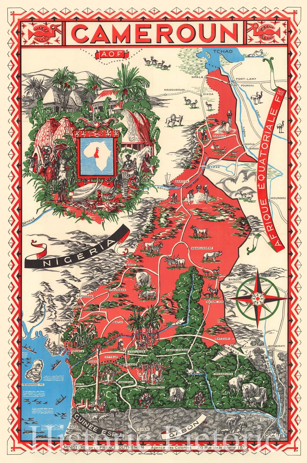 Historic Map : Craste Pictorial Map of Cameroon, 1950, Vintage Wall Art