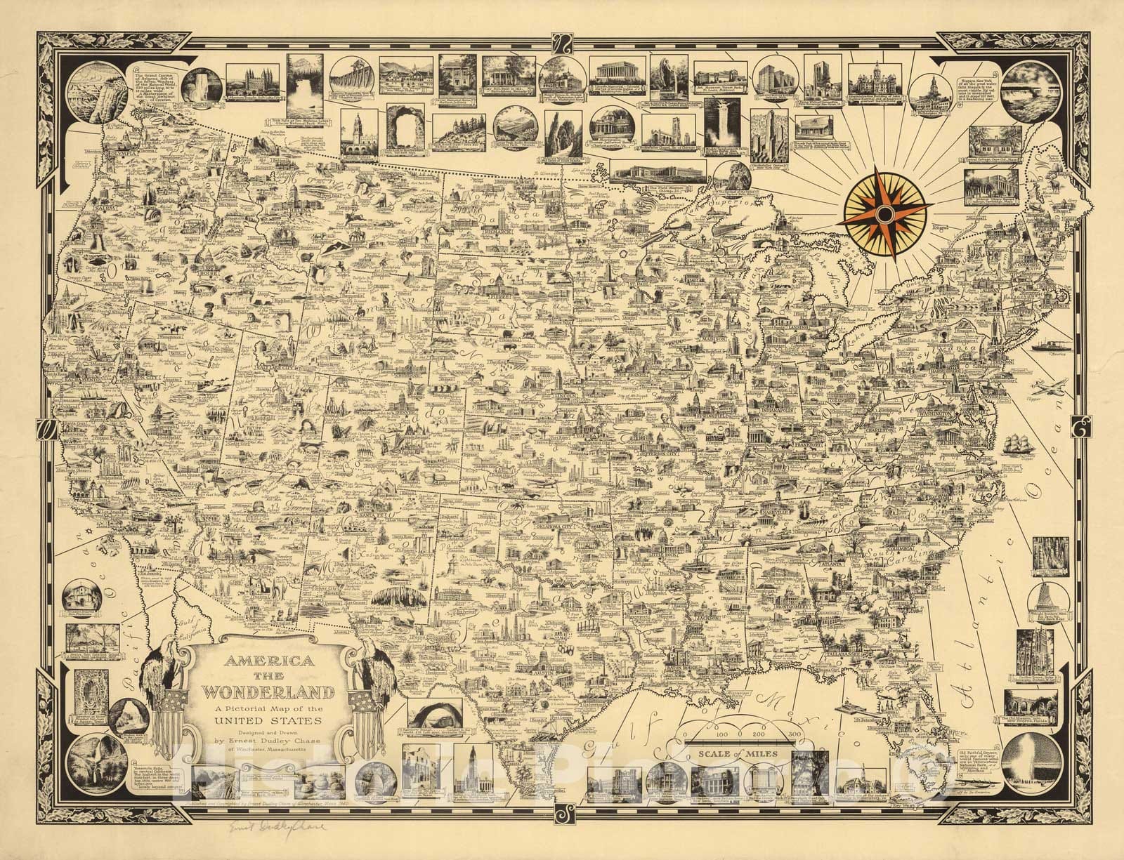 America the Wonderland. A Pictorial Map of the United States. Designed and Drawn by Ernest Dudley Chase of Winchester, Mass. | America the Wonderland. A Pictorial Map of the United States. Designed and Drawn by Ernest Dudley Chase of Winchester, Mass. |