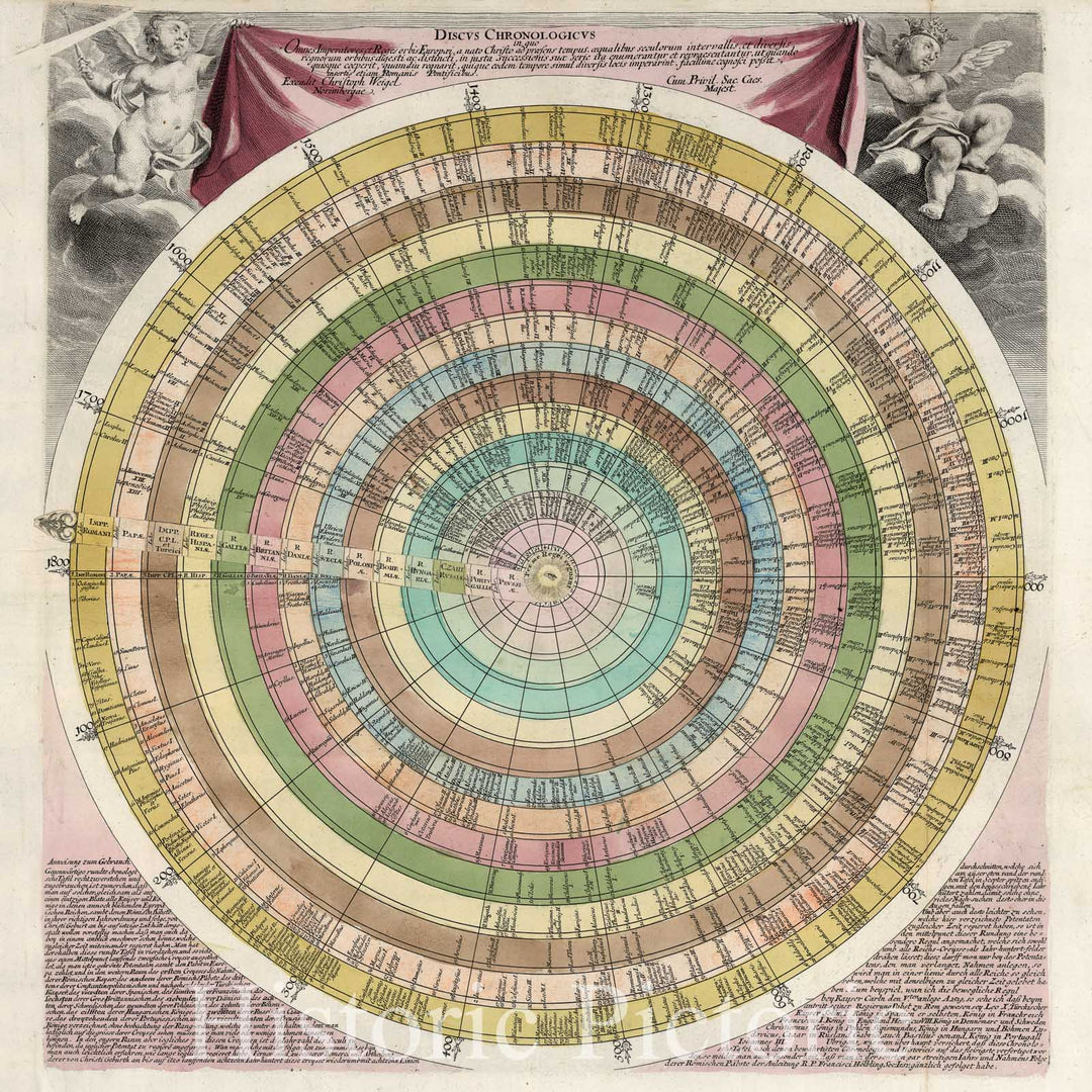 Historic Map : Italy, Discus Chronologicus in quo Omnes Imperatores et Reges Orbis Europaei, 1730 Timeline Pictorial Map , Vintage Wall Art
