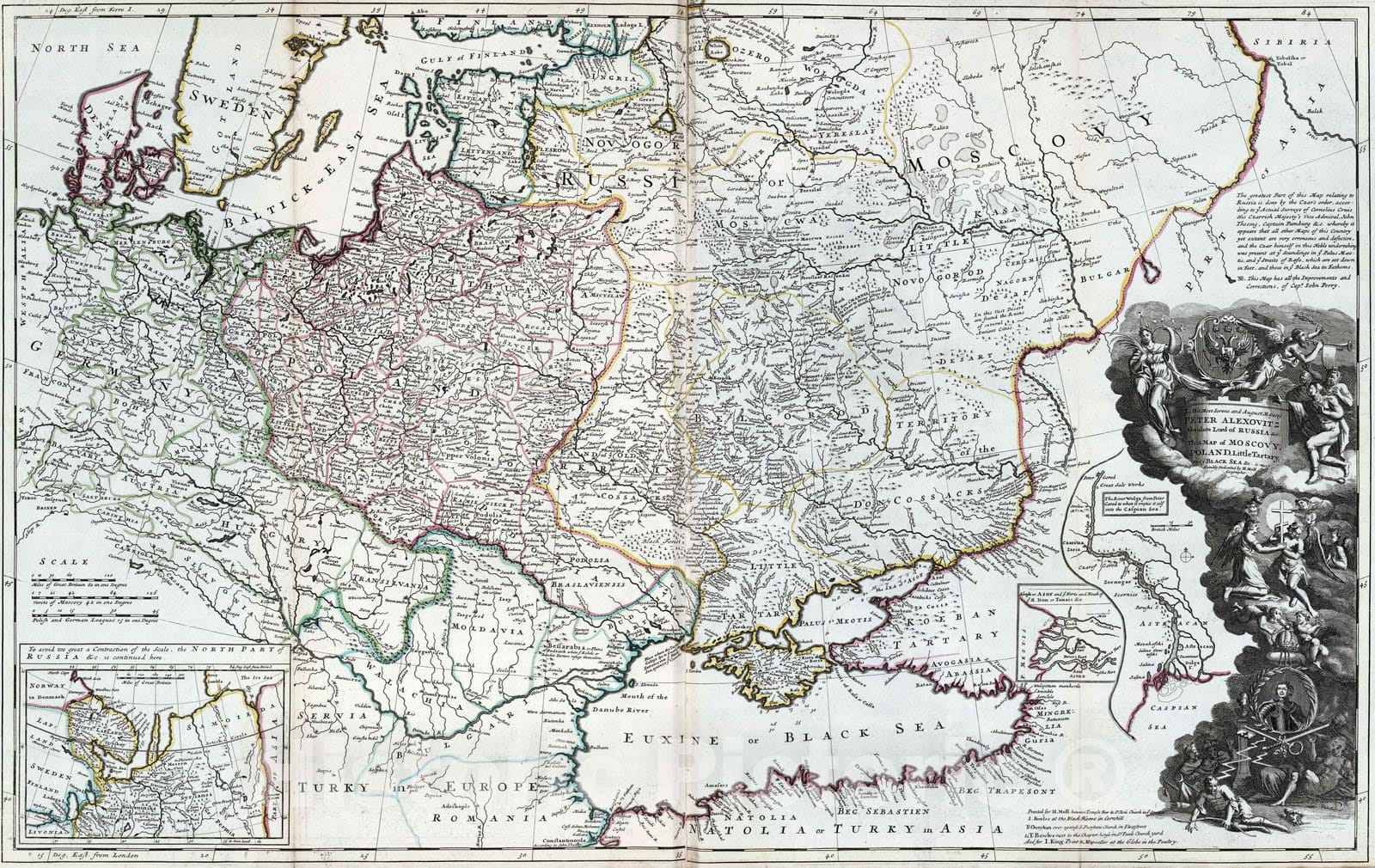 1732 Map of Moscovy, Poland, Little Tartary and ye Black Sea