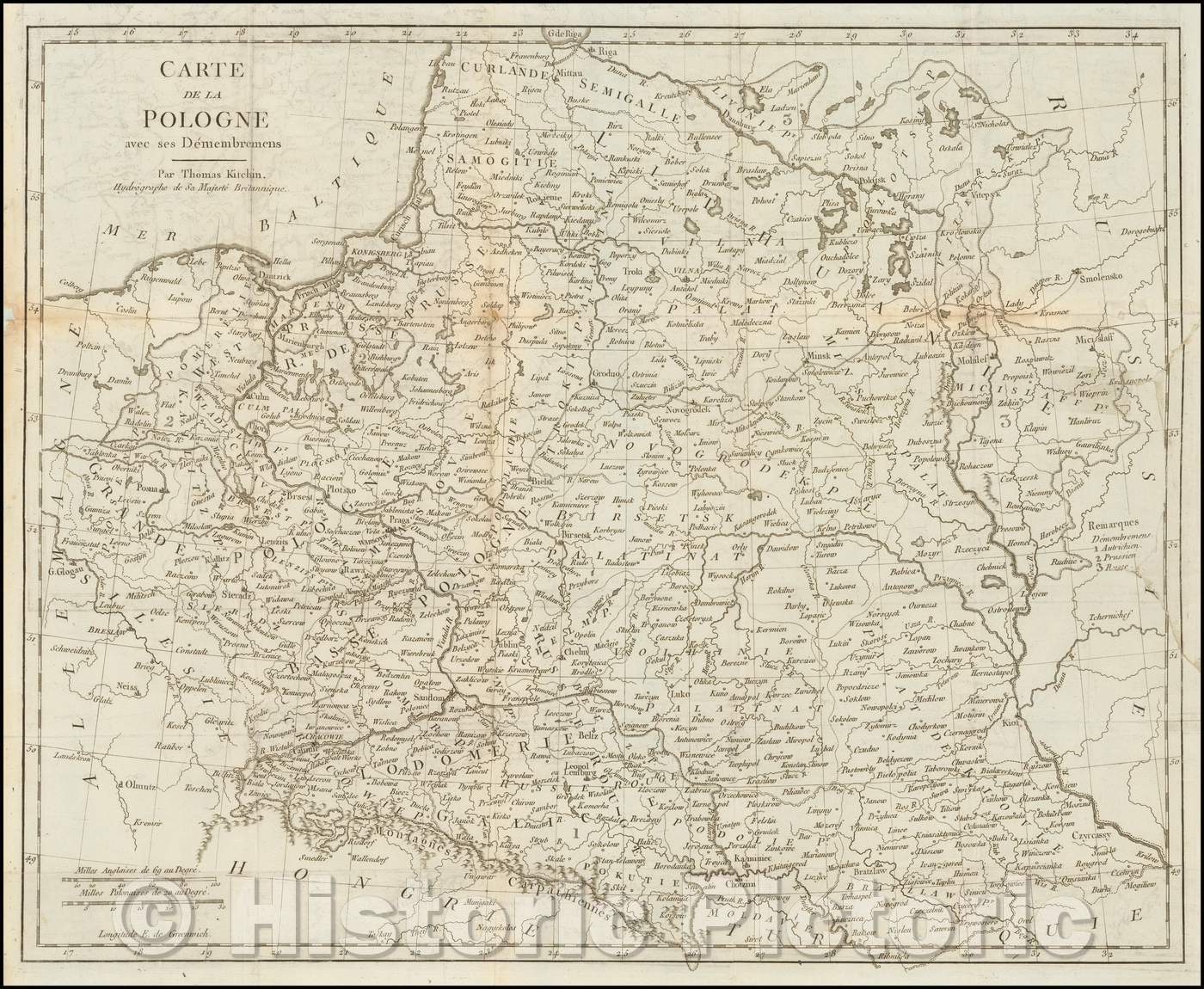 • .Historic Map - Carte de la Pologne avec ses Demembremens/Map of Poland, showing its dismemberments, 1786, Anonymous - Vintage Wall Art