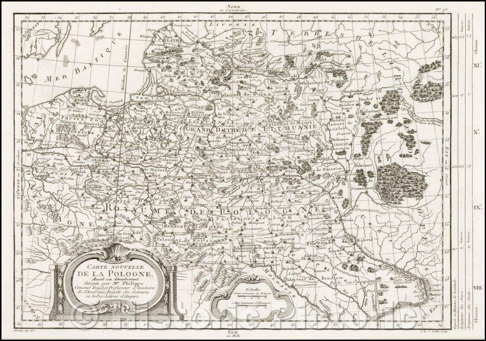Historic Map - Carte Nouvelle de la Pologne Avant son demenbrement dirigee/Map of Poland, published in Paris by Moithey and engraved by J.E.J. Vallet, 1787 - Vintage Wall Art