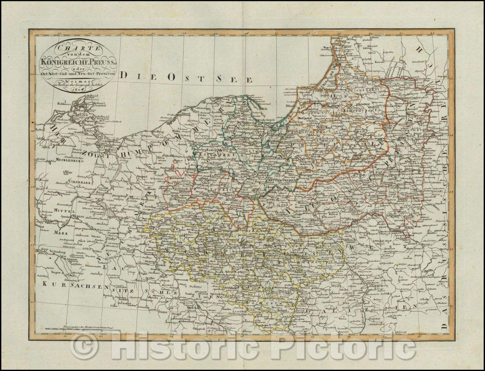 Historic Map - Chartevon dem Konigreiche Preuss en Ost-West-Sud-und Neu Ost-Pre :: Prussia, then including much of Poland, Latvia, Lithuania and Estonia, 1806 - Vintage Wall Art