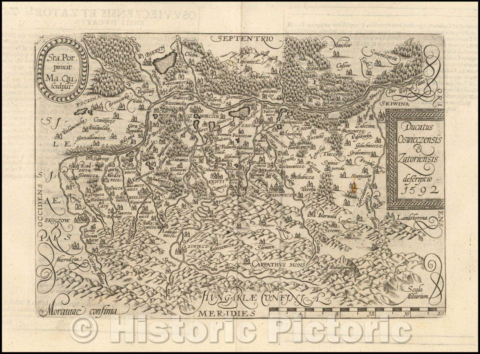 Historic Map - Ducatus Oswieczensis & Zatoriensis desc :: Southern Poland, from the Weysel River in the north to the Carpathian Mountains in the south, 1592 - Vintage Wall Art