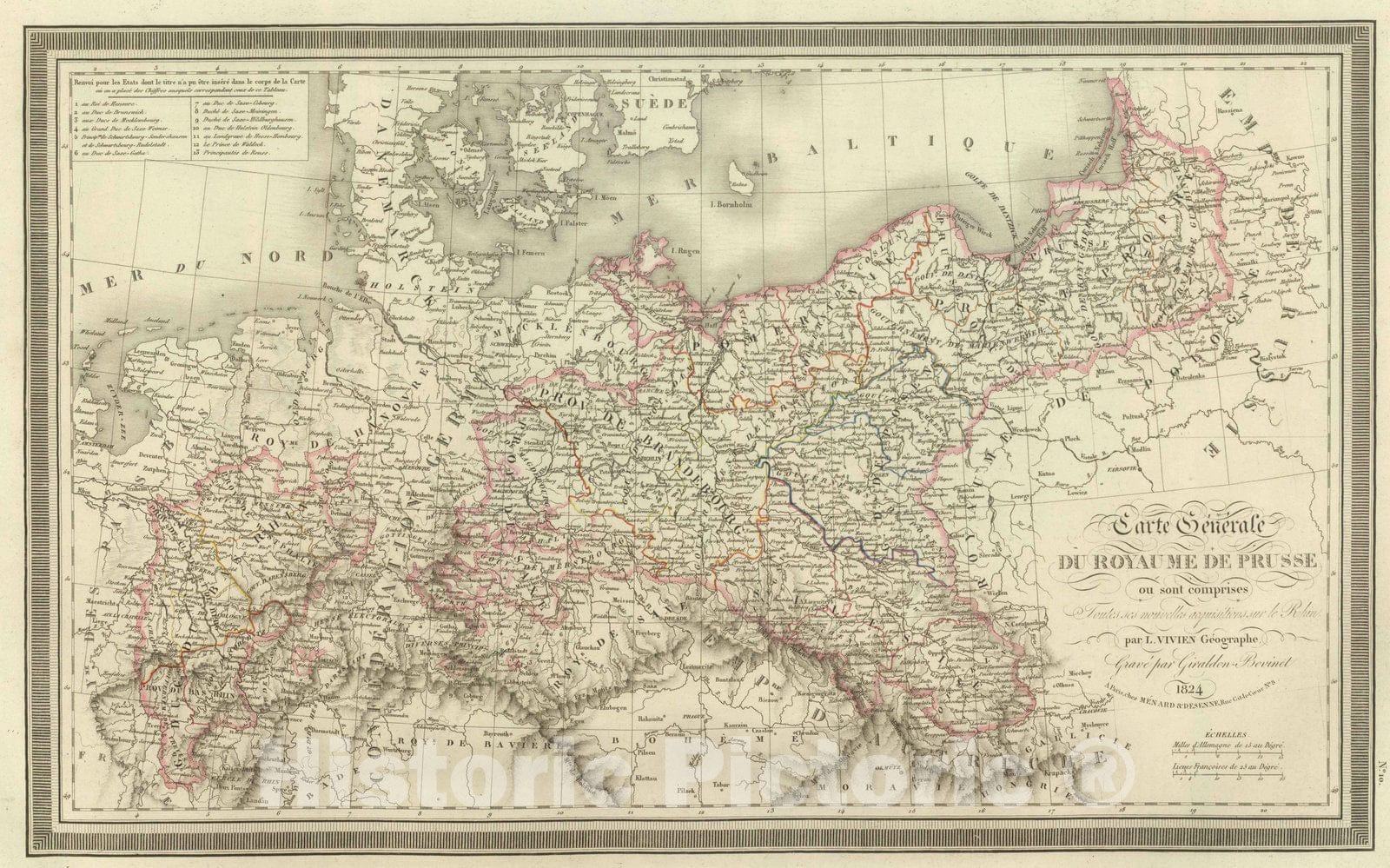 Historic Map : Germany; Poland, 1824 Carte Generale du Royaume de Prusse. , Vintage Wall Art