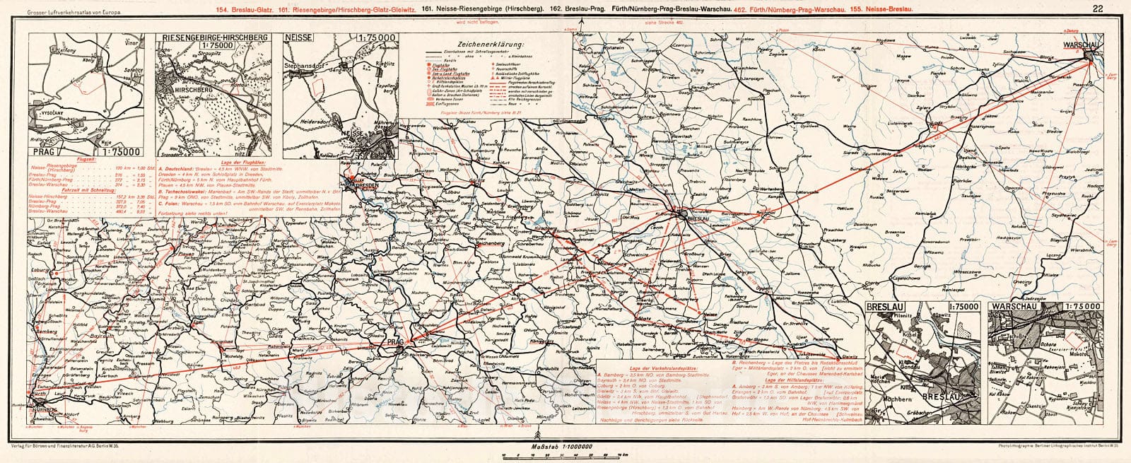 Historic Map : (Germany - Poland Airline Routes). (insets) (Airport Locations)., 1928, Vintage Wall Decor