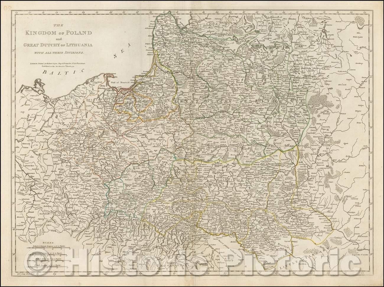 • .Historic Map - The Kingdom of Poland and Great Dutchy of Lithuania With All Their Divisions, 1772, Robert Sayer - Vintage Wall Art