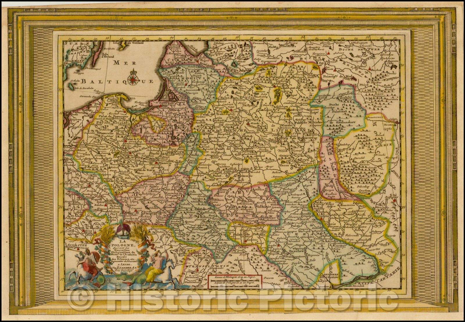 Historic Map - La Pologne Suivant les Nouvelles Observations (Border) / Vander Aa's Map of Poland, 1700, Pieter van der Aa - Vintage Wall Art