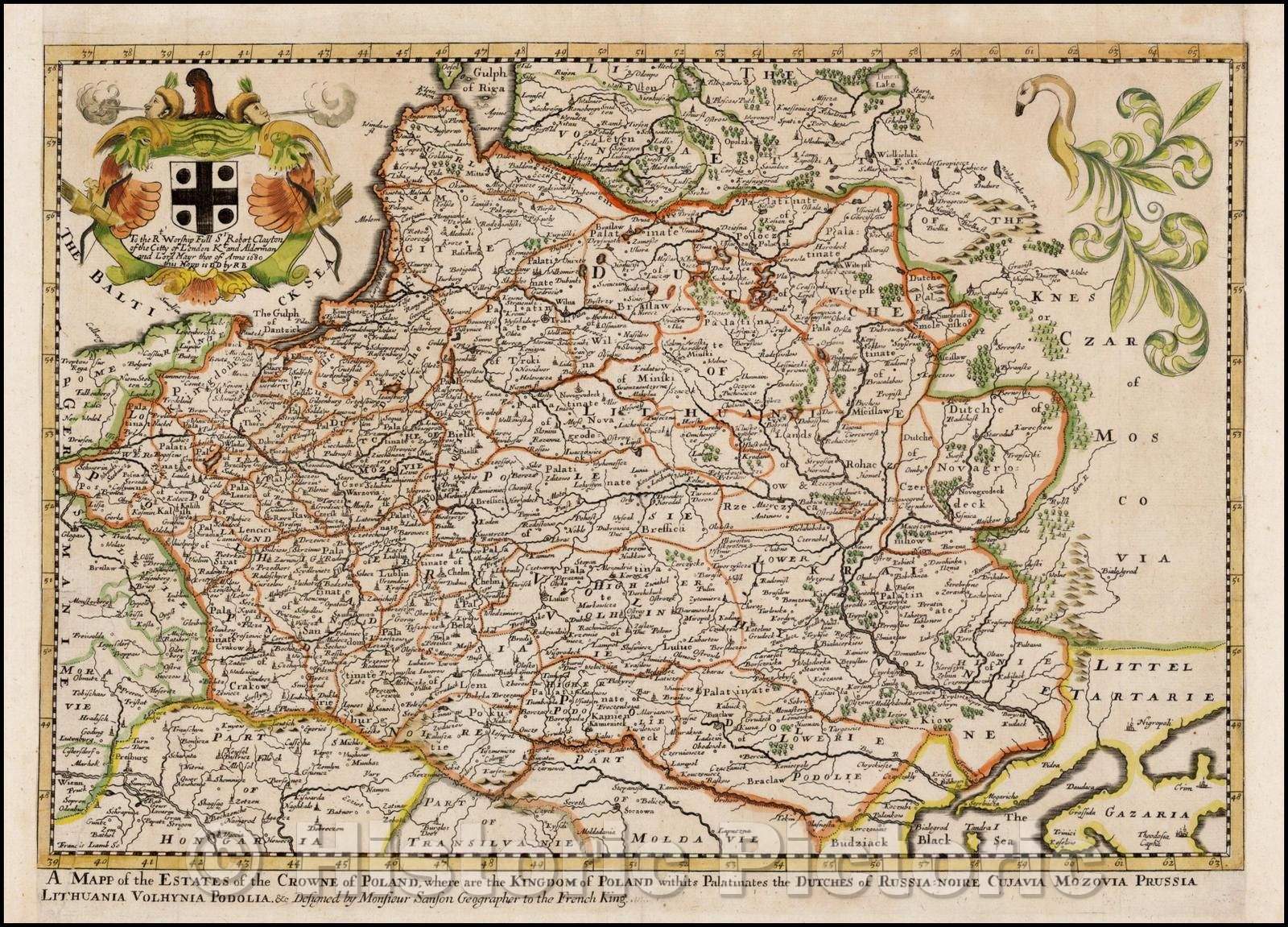 A Mapp of the Estates of the Crowne of Poland, where are the Kingdom of Poland withits Palatinates the Dutches of Russia....., 1680, Richard Blome