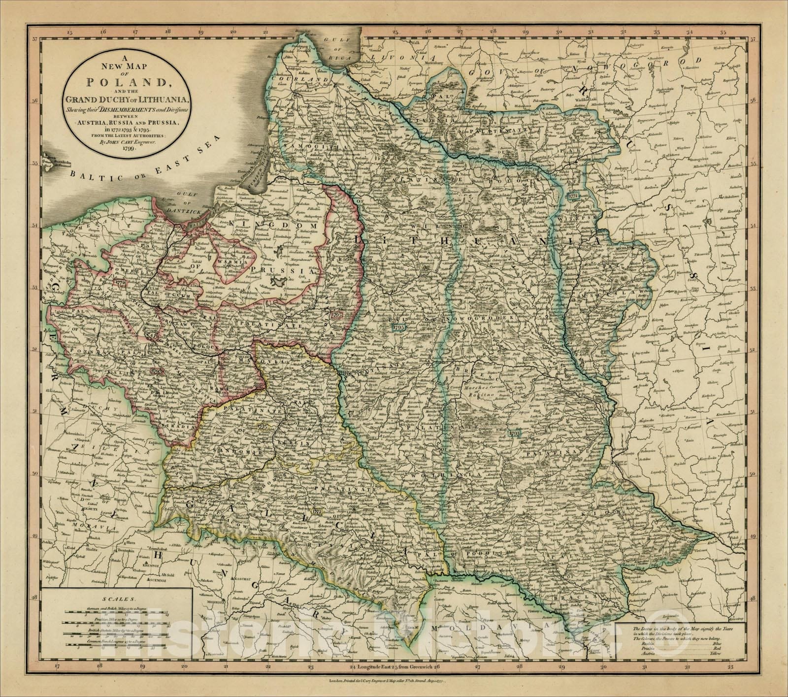 A New Map of Poland, and the Grand Duchy of Lithuania, Shewing their Dismemberments and Divisions Between Austria, Russia and Prussia, 1799