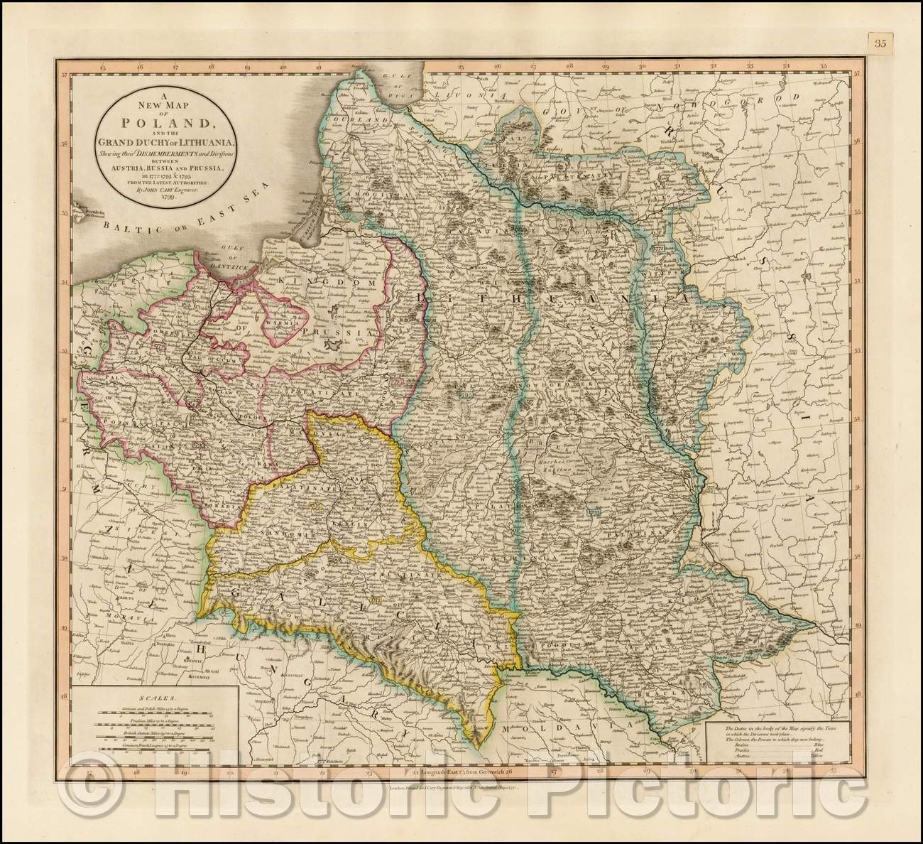 • Historic Map - A New Map of Poland, and the Grand Duchy of Lithuania, Shewing their Dismemberments and Divisions Between Austria, Russia and Prussia, 1799 v2