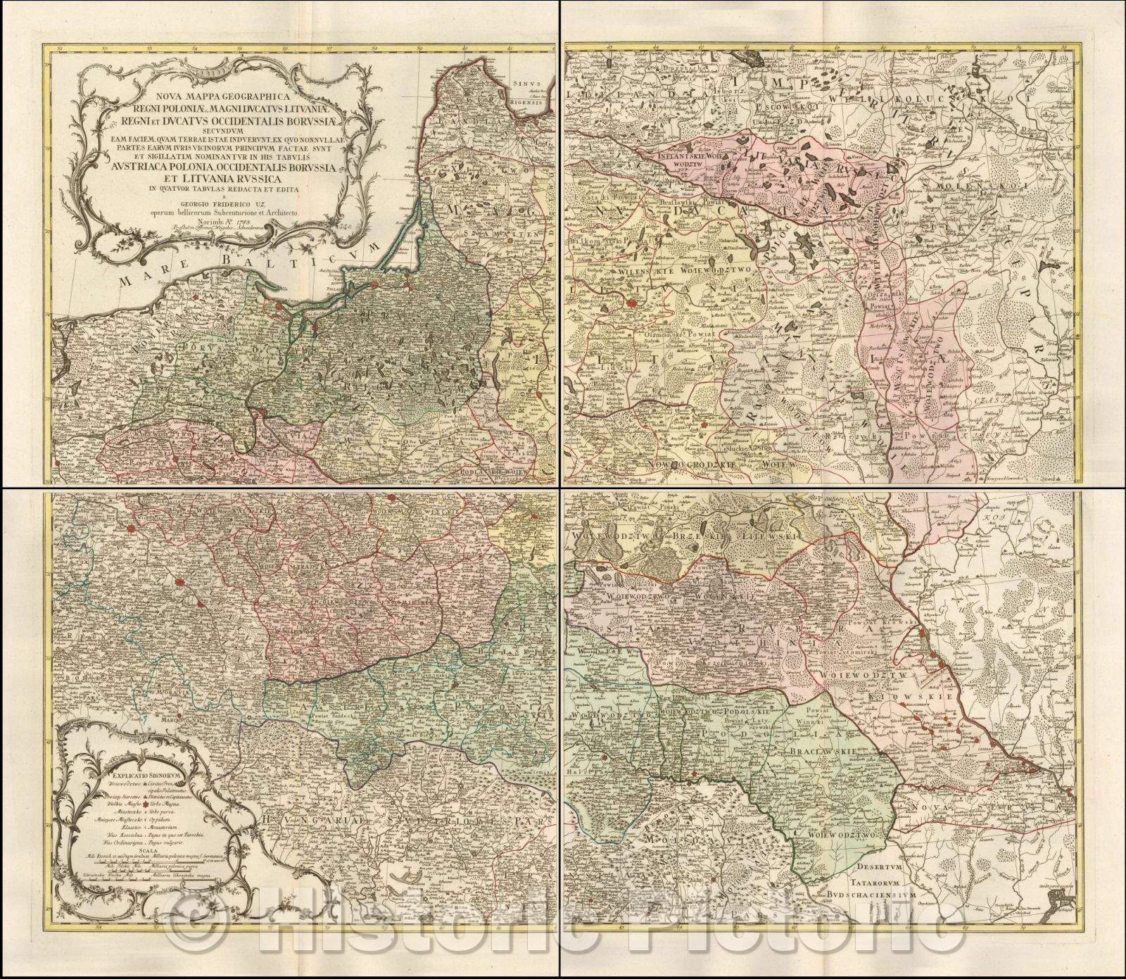 • .Historic Map - Nova Mappa Geographica Regni Poloniae, Magni Ducatus Lithuaniae/Georg Freidrich Utz's Map of Poland, first issued in 1773, 1788, - Vintage Wall Art