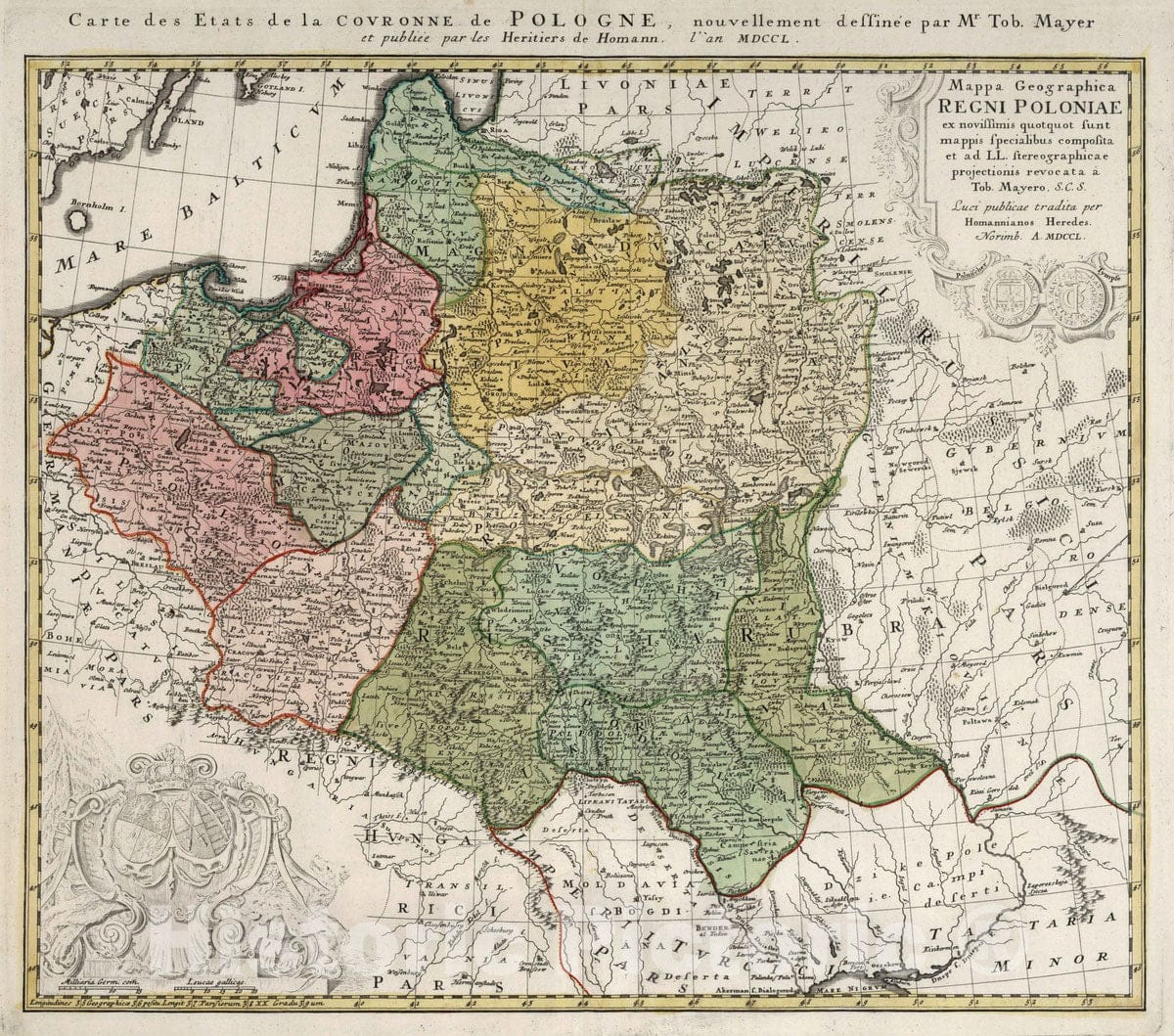 Poland, 1750 Mappa Geographica Regni Poloniae. , Vintage Wall Art