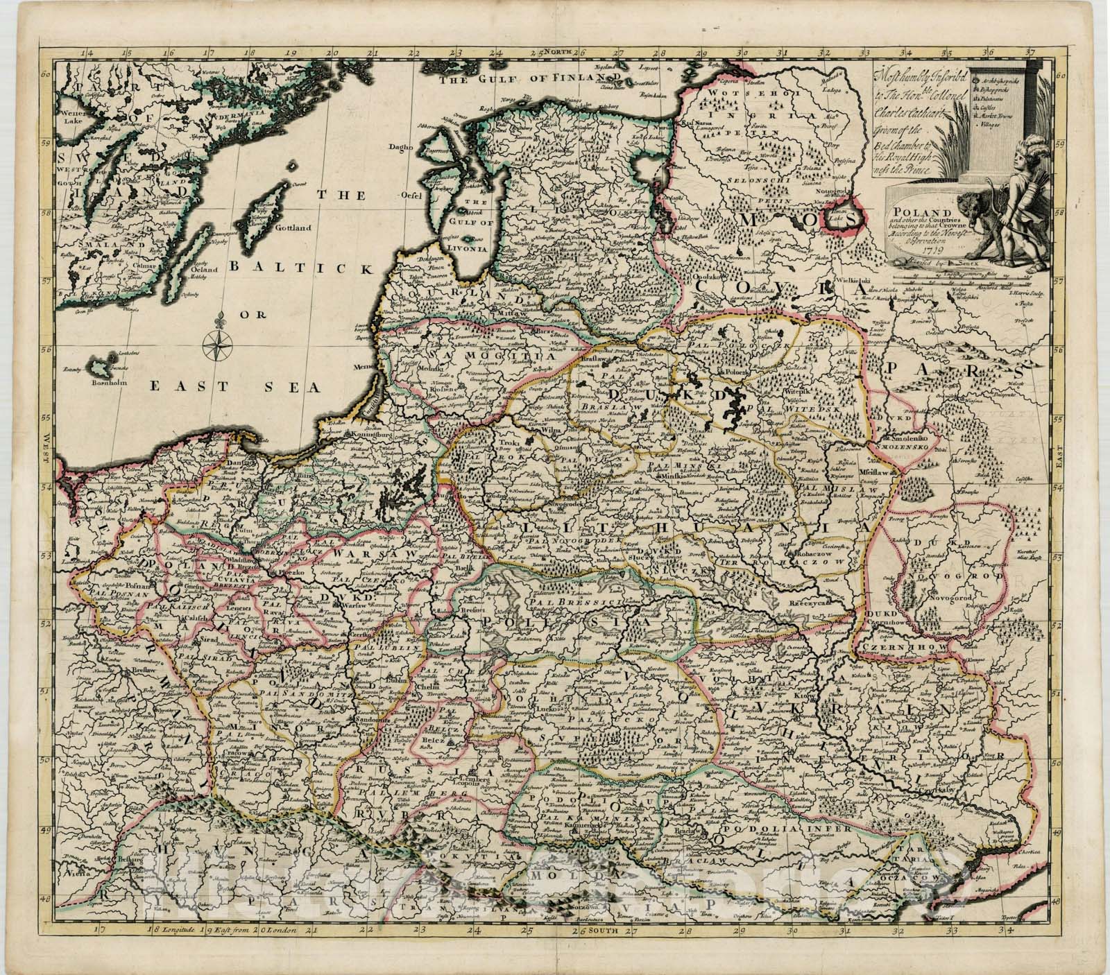 Historic Map : Poland and other the Countries belonging to the Crowne According to the Newest Observation 1719, 1719, John Senex, v1, Vintage Wall Art