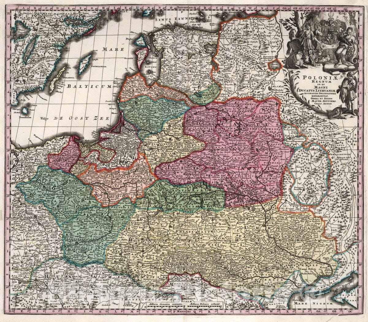 Historic Map : Poland, Poloniae Regnum ut et Magni Ducatus Lithuaniae, 1727 Atlas , Vintage Wall Art