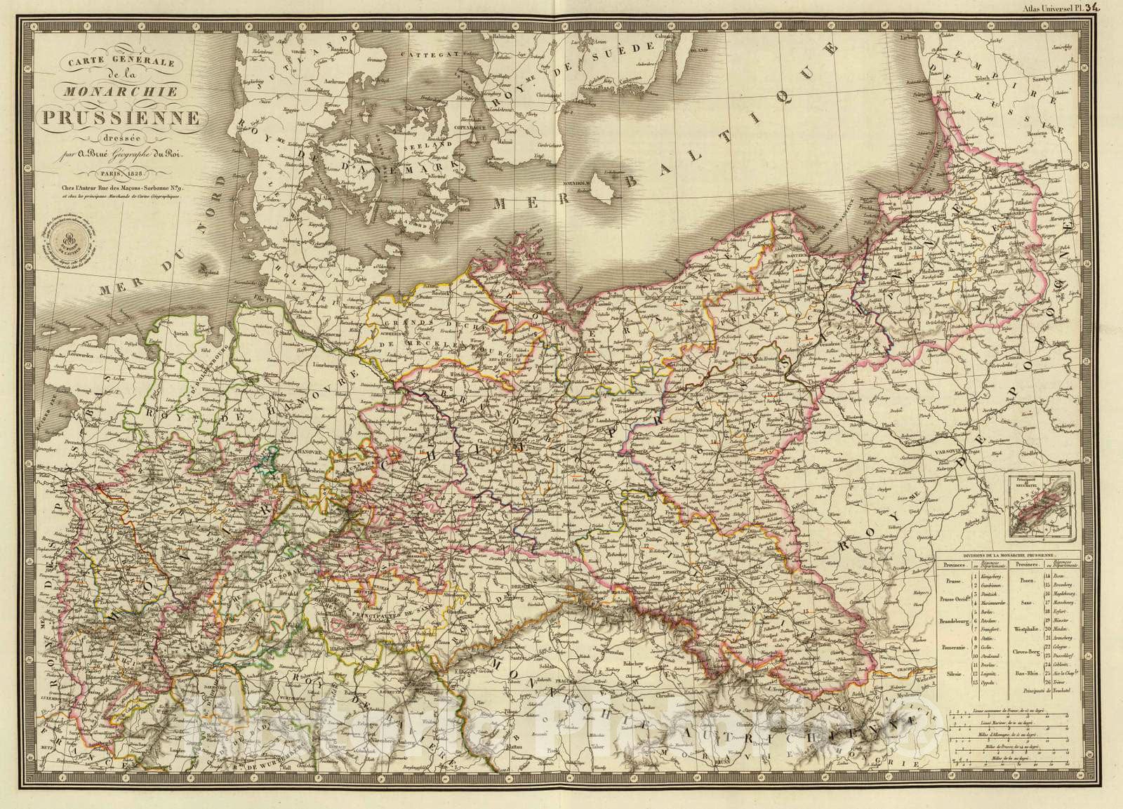 Historic Map : Poland; Prussia , Germany, 1828 Monarchie Prussienne. , Vintage Wall Art