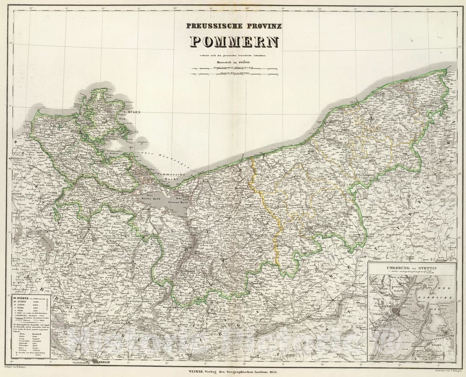 • Historic Map : Poland; Prussia , Germany, Szczecin Region (Poland) 1856 Pommern. , Vintage Wall Art