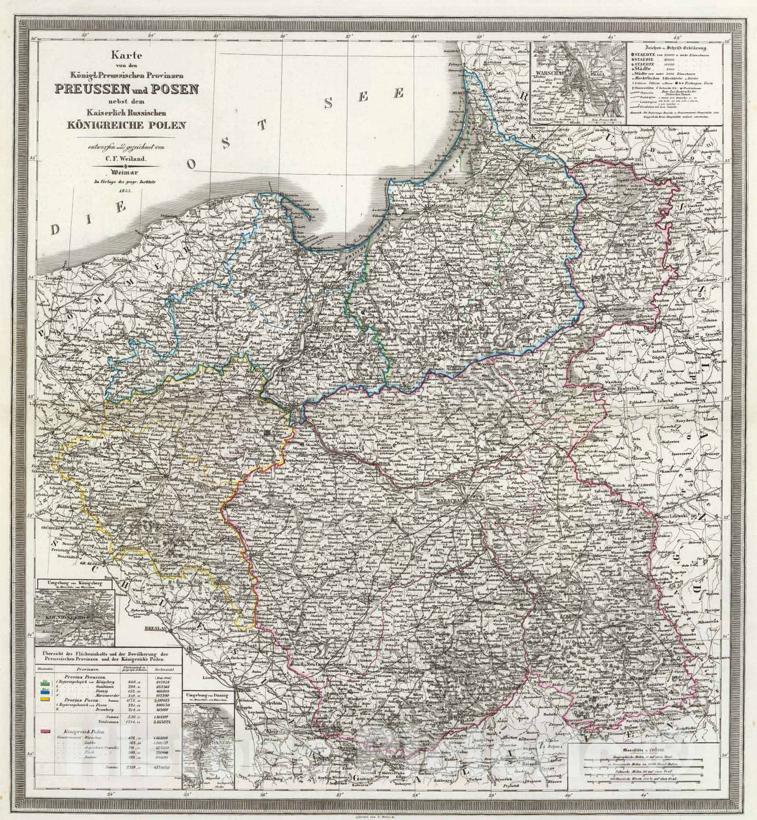 • .Historic Map : Poland; Russia, Kaliningrad Region (Kaliningradskaia oblast, Russia) 1856 Preussen, Posen, Polen. , Vintage Wall Art