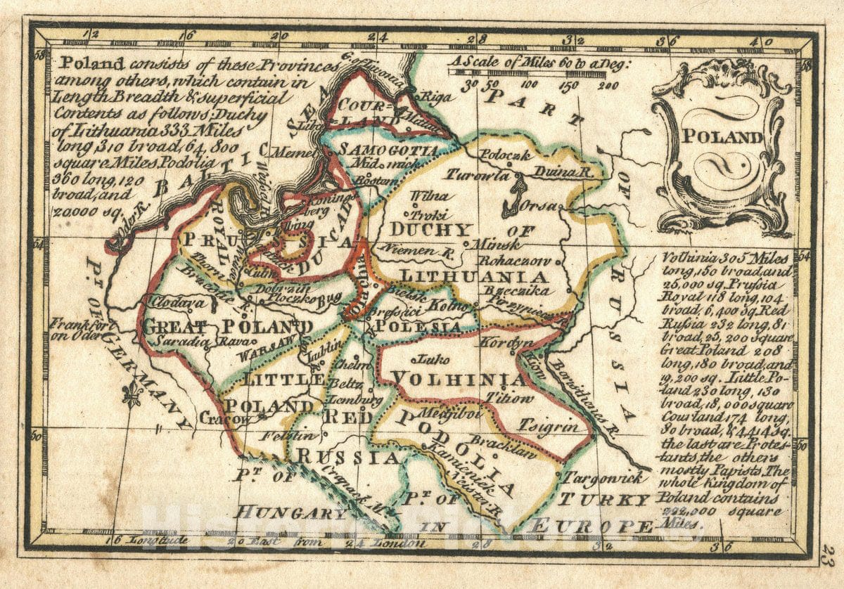 • .Historic Map : Poland. (to accompany) Atlas Minimus or a New Set of Pocket Maps of The Several Empires, Kingdoms and States of The Known World, 1758 Atlas - Vintage Wall Art