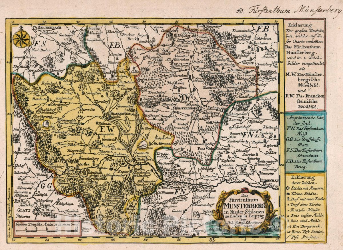 Poland, Vol 1:50- Das Furstenthum Munsterberg in Nieder Schlesien, 1740 Atlas , Vintage Wall Art