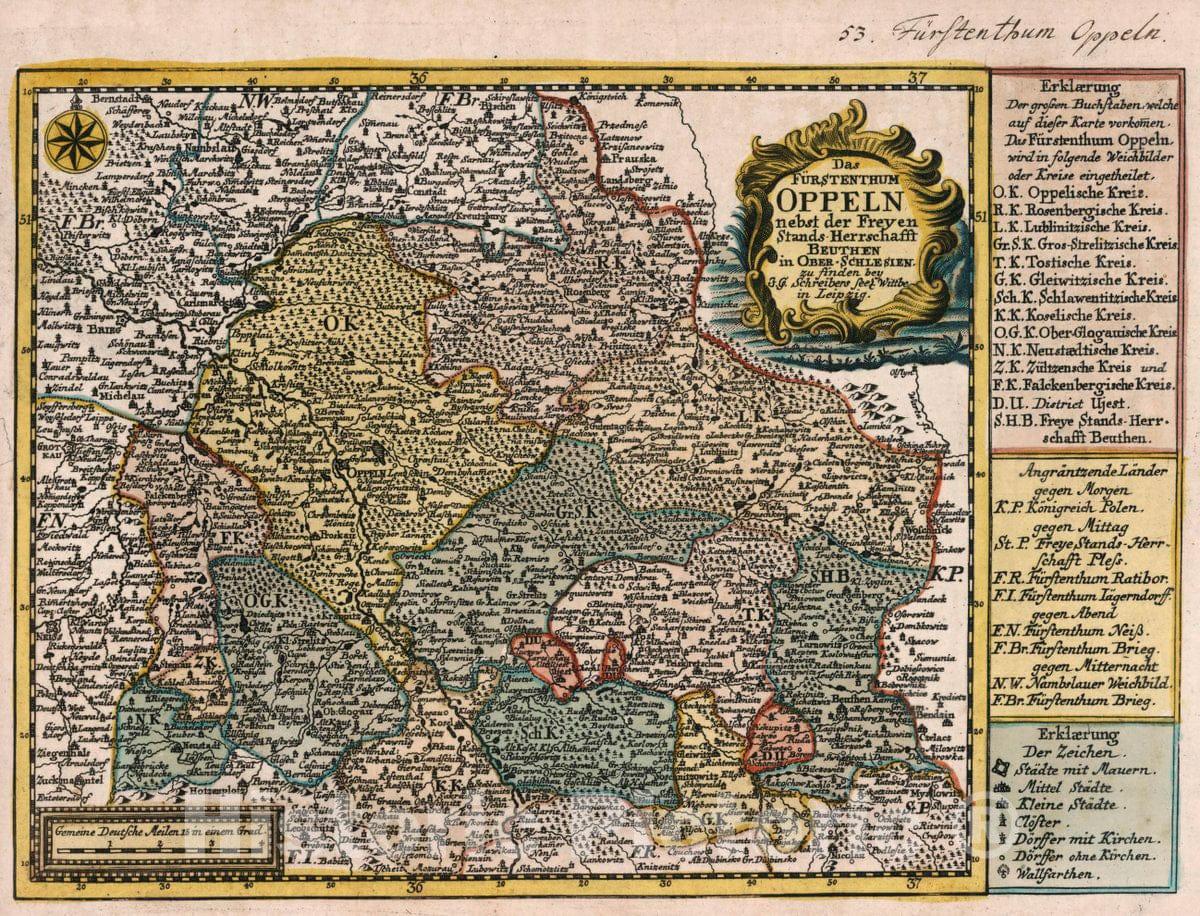 • .Historic Map : Poland, Vol 1:53- Das Furstenthum Oppeln, 1740 Atlas , Vintage Wall Art