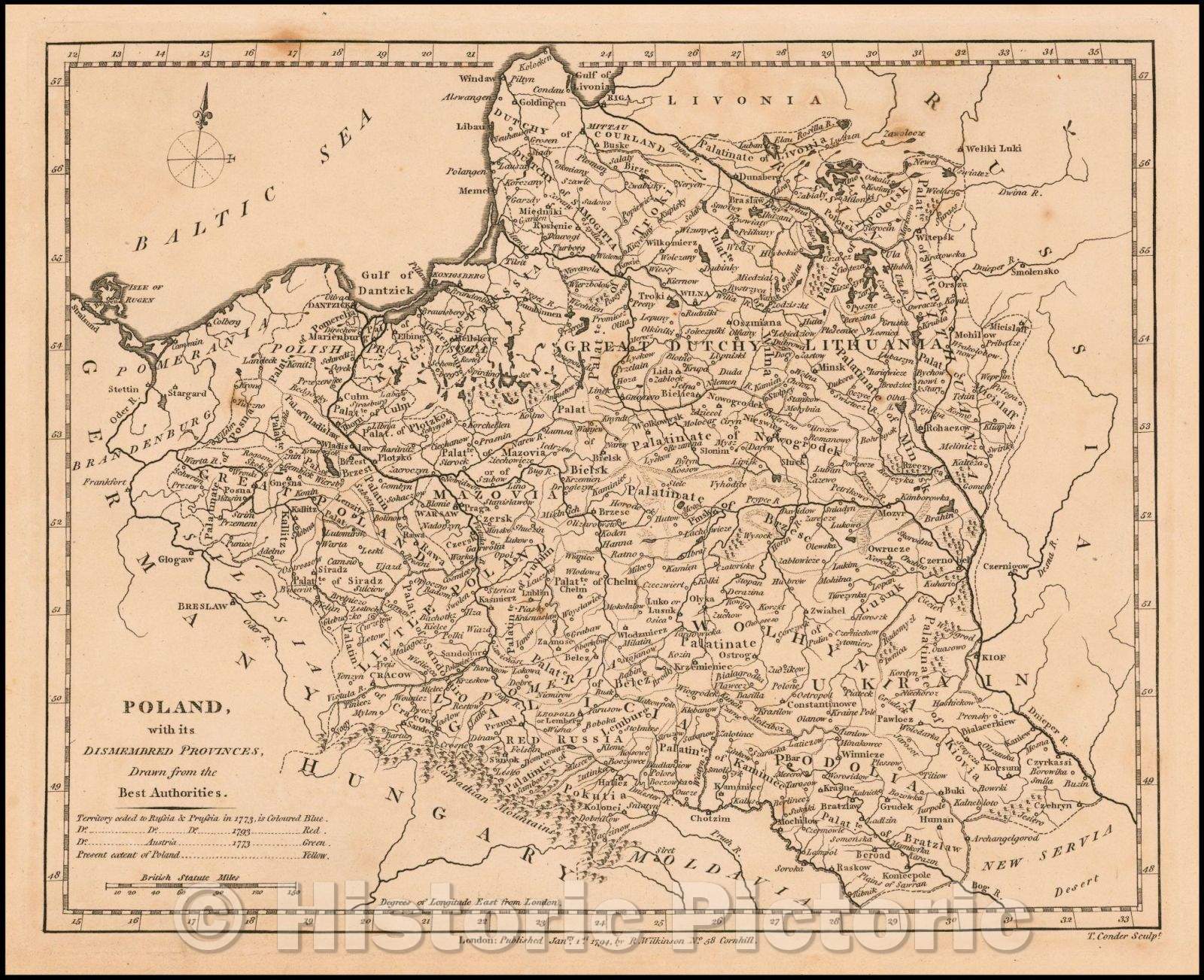 Historic Map - Poland with its Dismembered Provinces, 1794, Robert Wilkinson - Vintage Wall Art