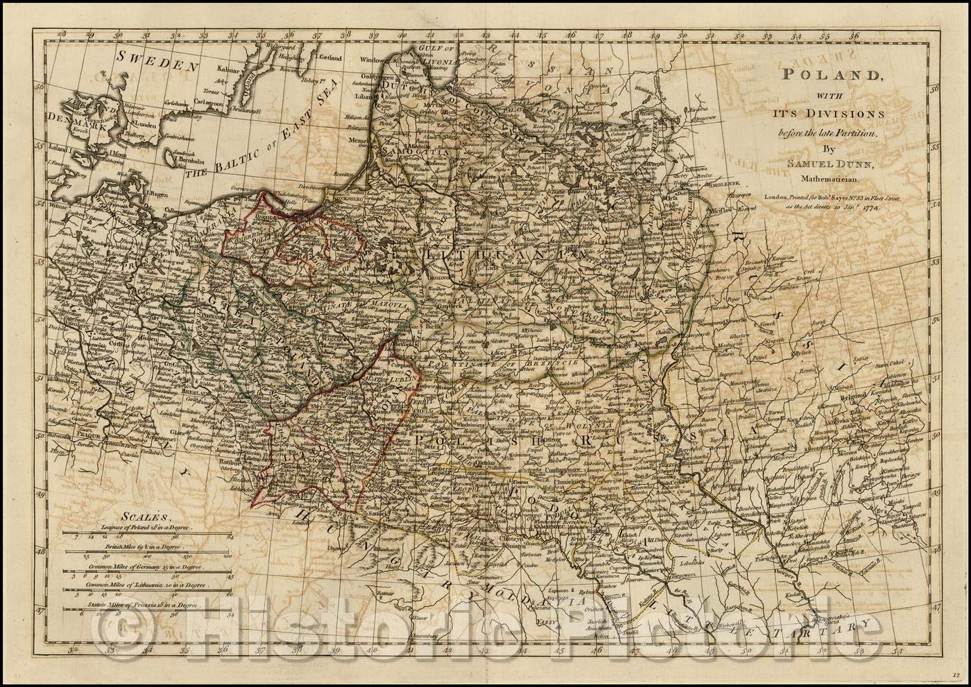 Historic Map - Poland, with its Divisions before the late Partition, 1774, Samuel Dunn - Vintage Wall Art