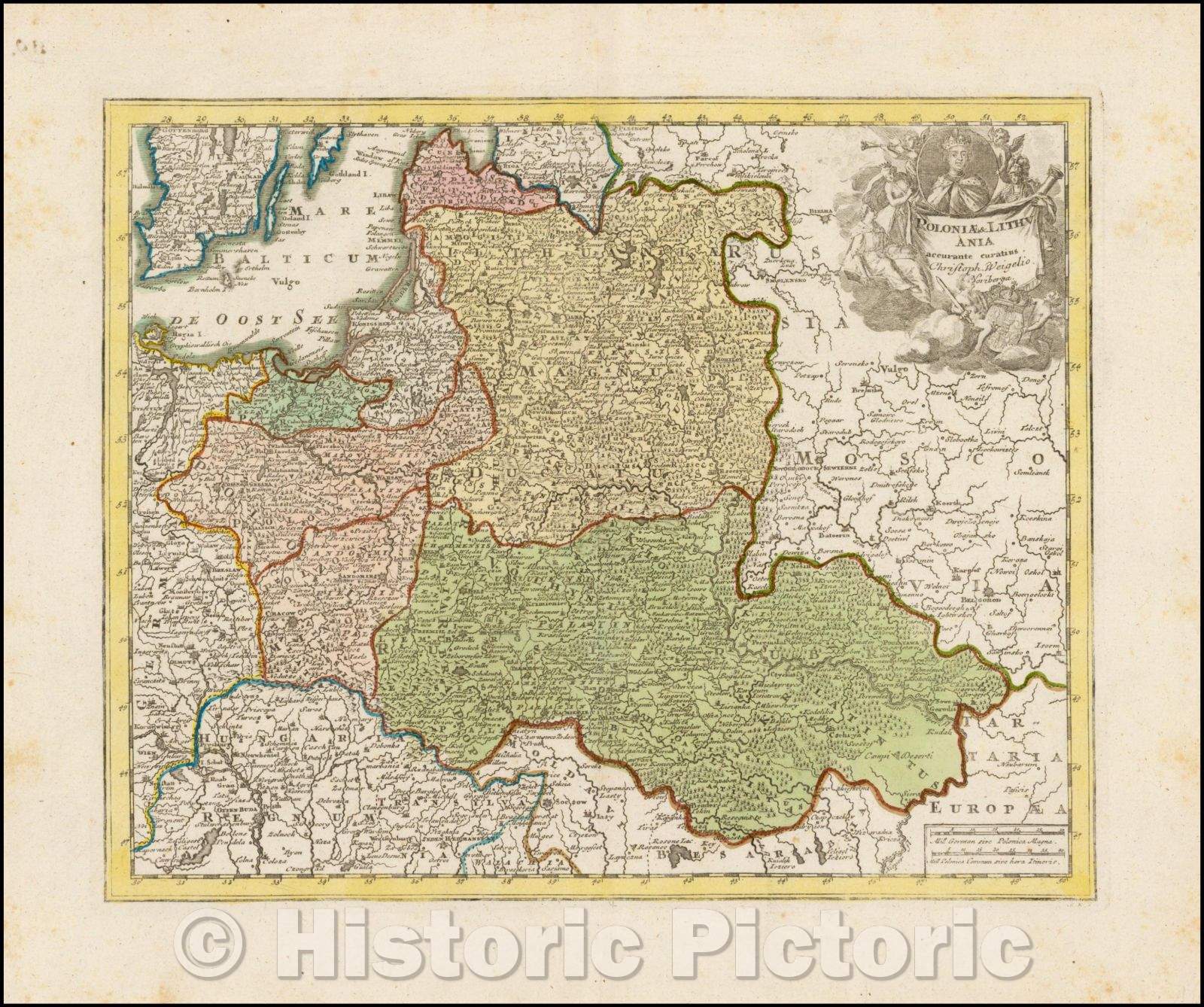 Historic Map - Poloniae & Lithuania accurante curatius/Map of Poland and Lithuania in their grandest configurations, published by Weigel, 1715 - Vintage Wall Art