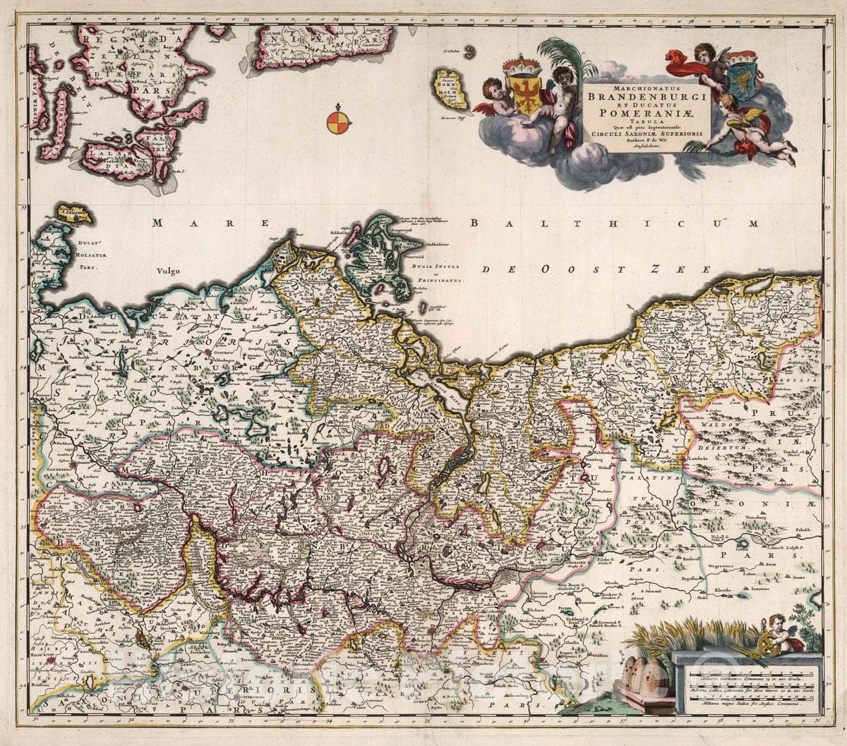 Pommerania (Germany and Poland) 1682 Marchionatus Brandenburgi et Ducatus Pomeraniae Tabula. , Vintage Wall Art