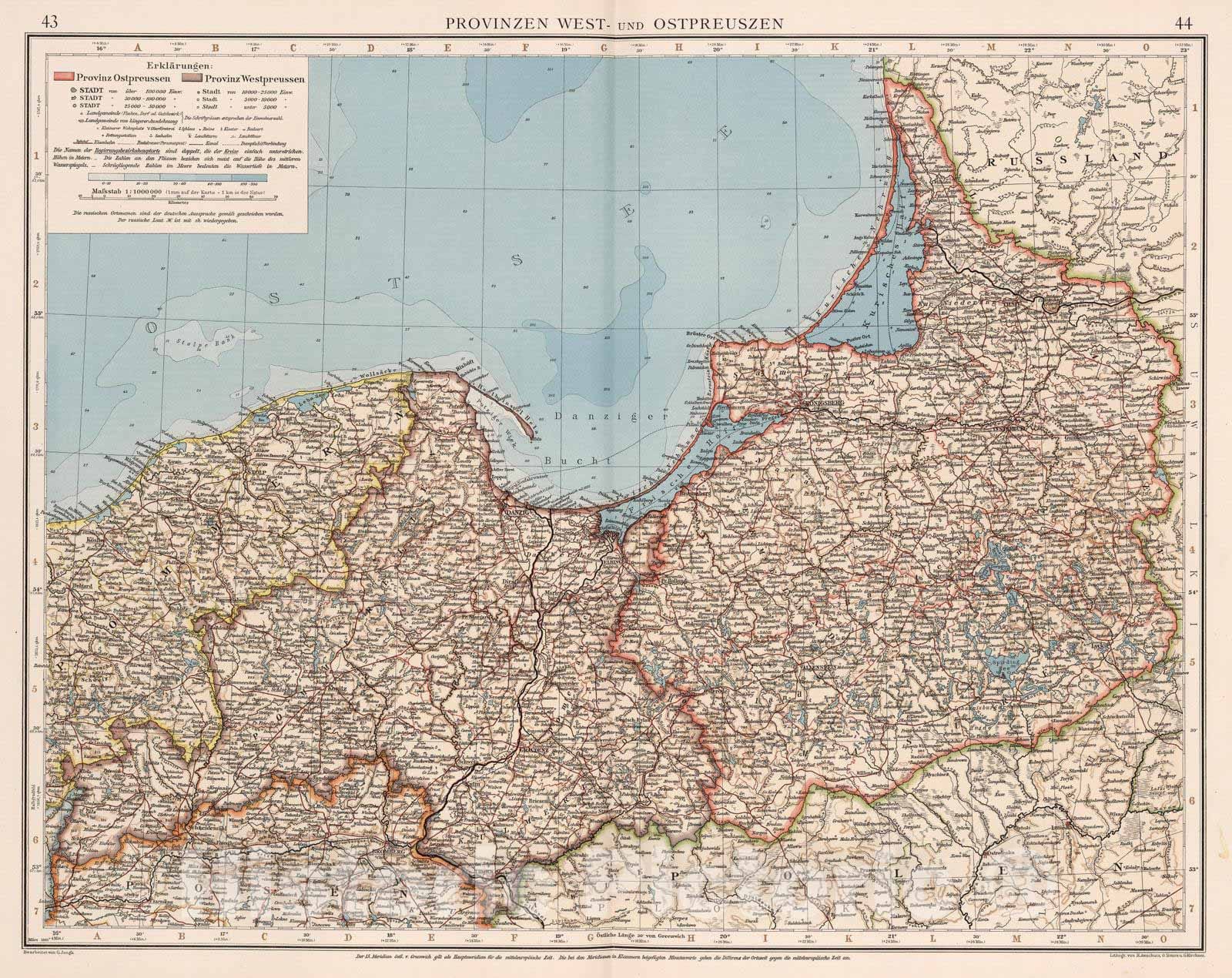 Historic Map : Prussia , Germany; Poland, 1905 Provinzen West- und Ostpreuszen , Vintage Wall Art