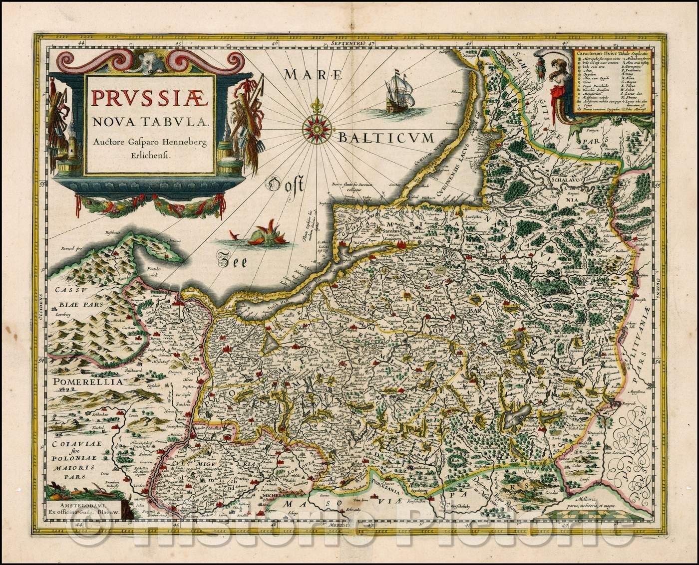 Historic Map - Prussiae Nova Tabula/Blaeu's Map of Prussia, northeastern Poland from about Gdansk to Lithuania,Russian enclave of Kaliningrad Oblast, 1634 - Vintage Wall Art