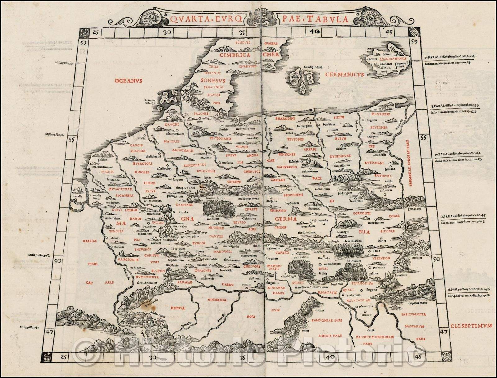 Historic Map - Quarta Europae Tabula (Germany, Poland, Low Countries), 1511, Bernardus Sylvanus - Vintage Wall Art