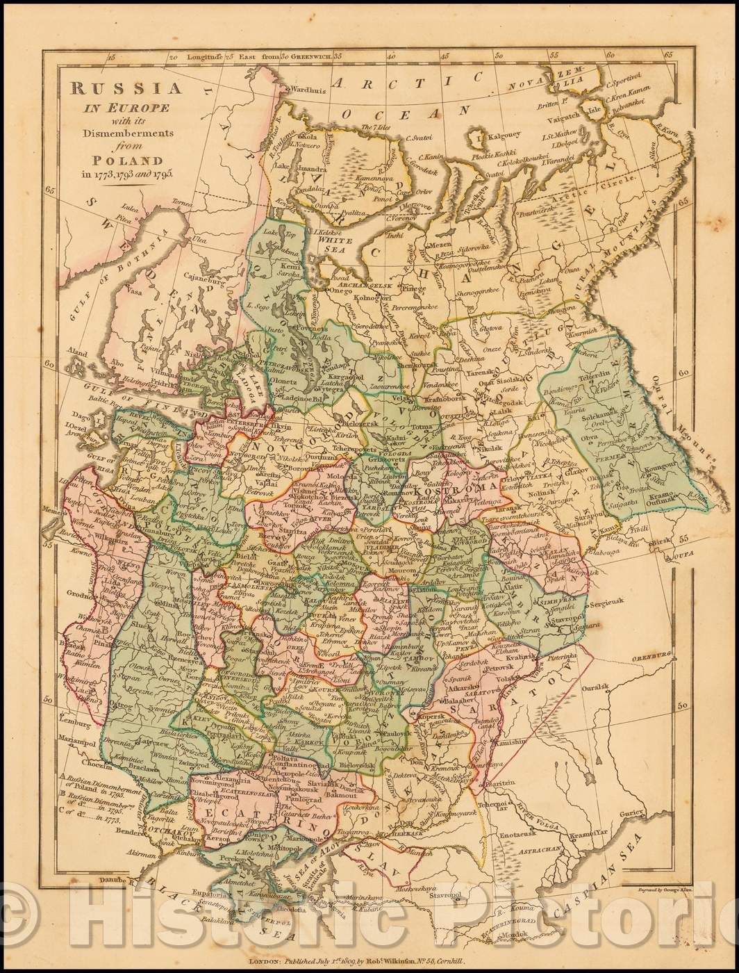 Historic Map - Russia In Europe with its Dismemberments from Poland in 1773, 1793 and 1795, 1809, Robert Wilkinson - Vintage Wall Art