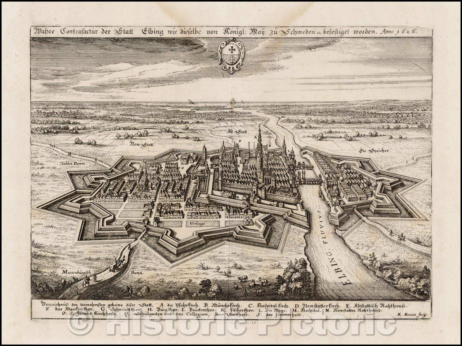 Wahre Contrafacur der Statt Elbing wie dieselbe von Konigl. Maij: zu Sch :: Birdseye View of the town of Elblag in Northern Poland, 1640