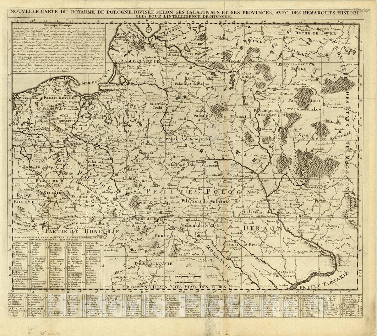 Nouvelle carte du Royaume de Pologne, divisee selon ses palatinats et ses provinces, avec des remarques historiques pour l'intelligence de l'histoire