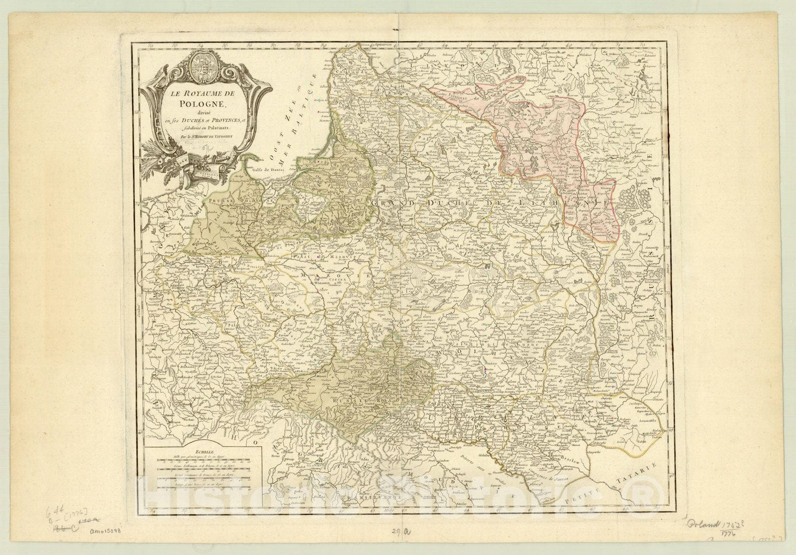 Map : Poland 1752, Le royaume de Pologne : divise en ses duches et provinces, et subdivise en Palatinats , Antique Vintage Reproduction