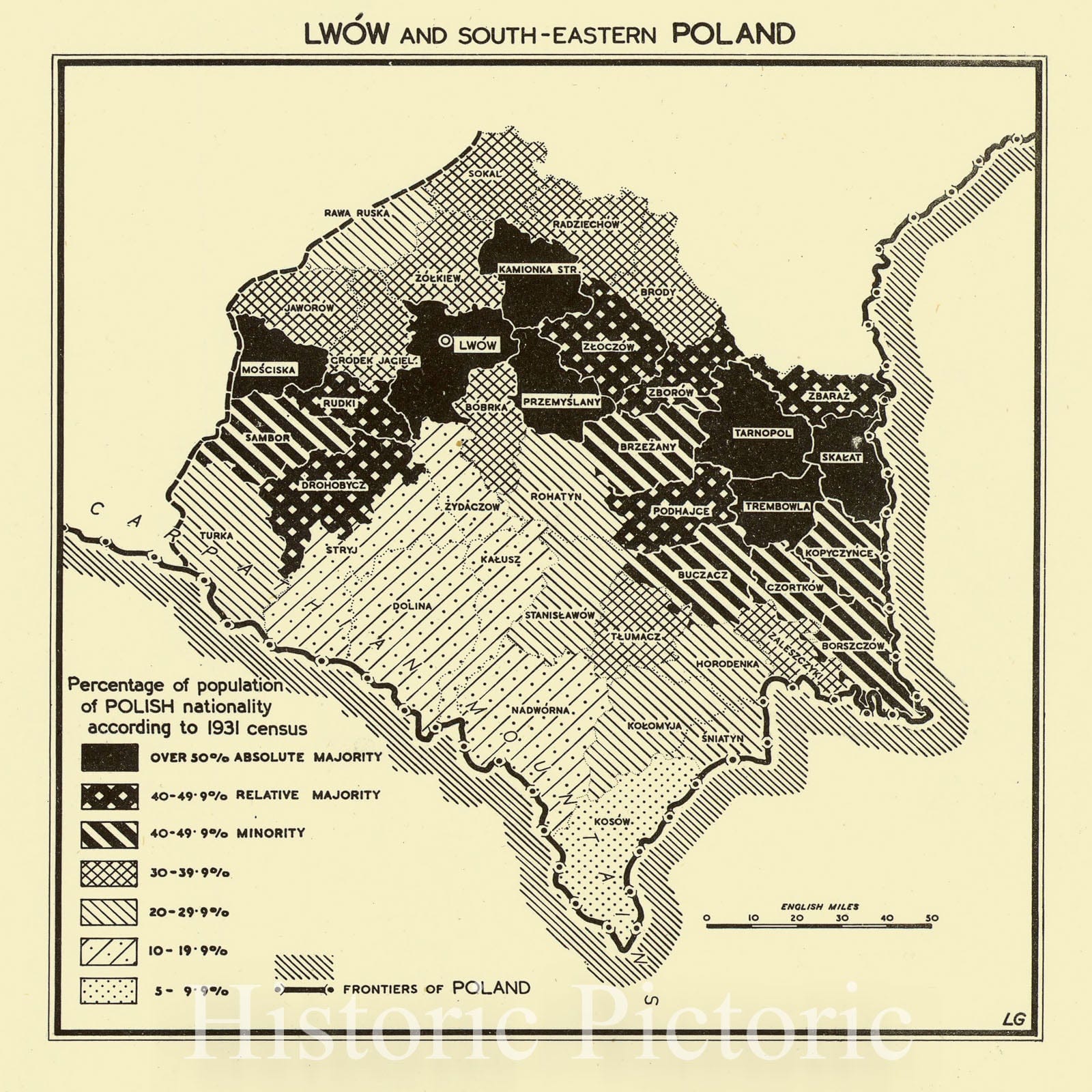 • .Map : Poland 1931, Lwow and south-eastern Poland, Antique Vintage Reproduction