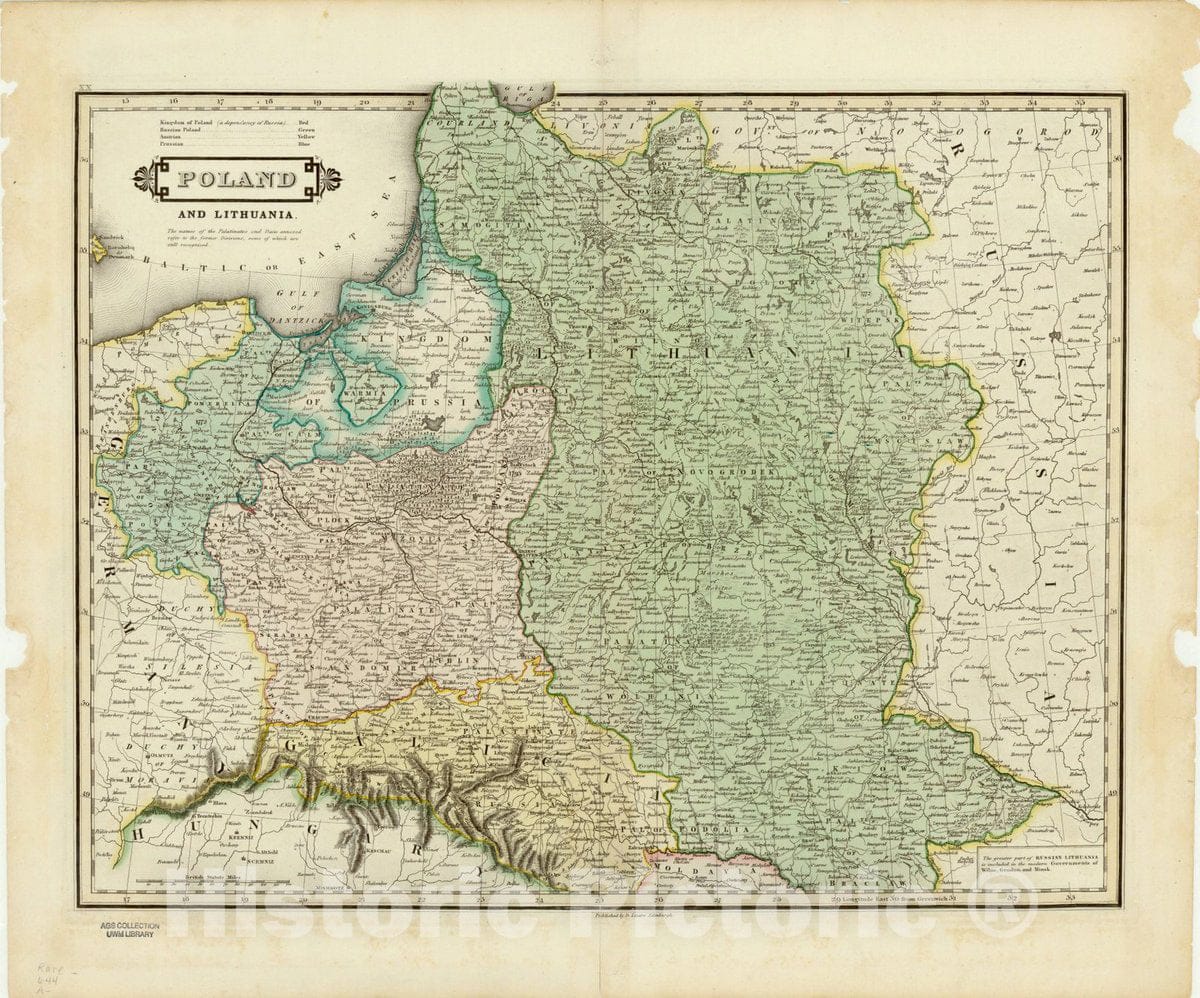 Map : Poland and Lithuania 1831, Poland and Lithuania , Antique Vintage Reproduction