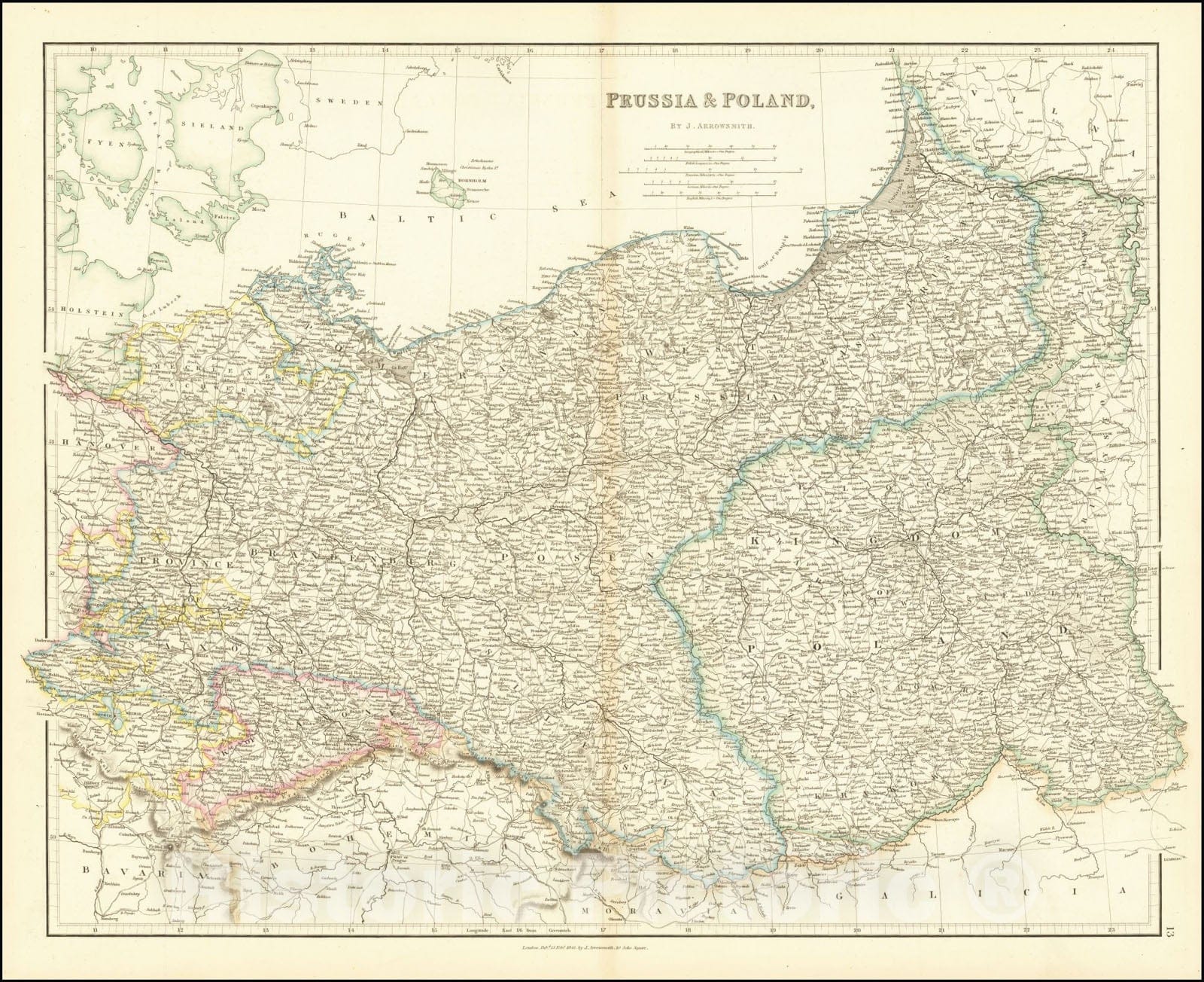 Historic Map : Prussia & Poland, 1842, Vintage Wall Art