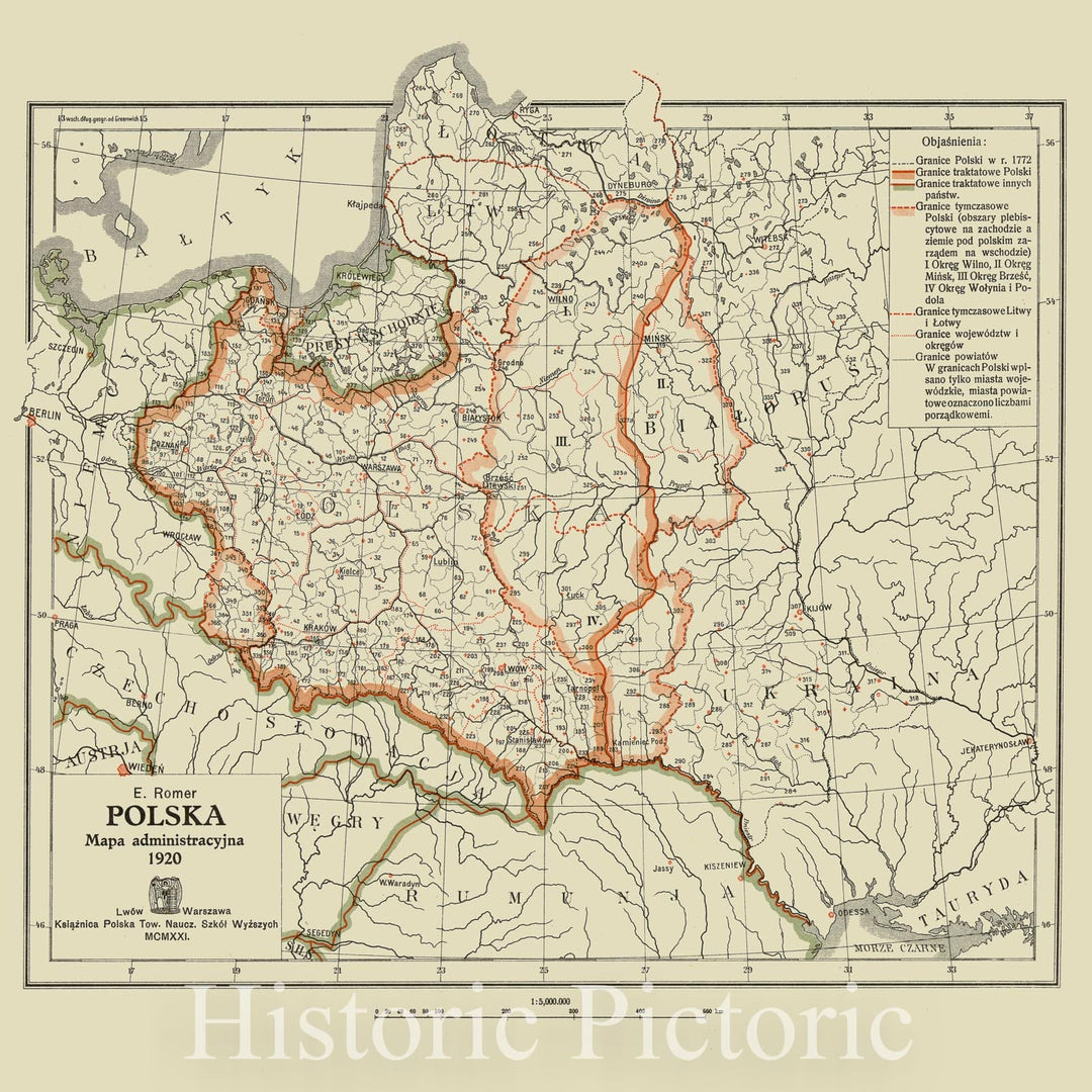 Map : Poland 1921, Polska mapa administracyjna 1920, Antique Vintage Reproduction