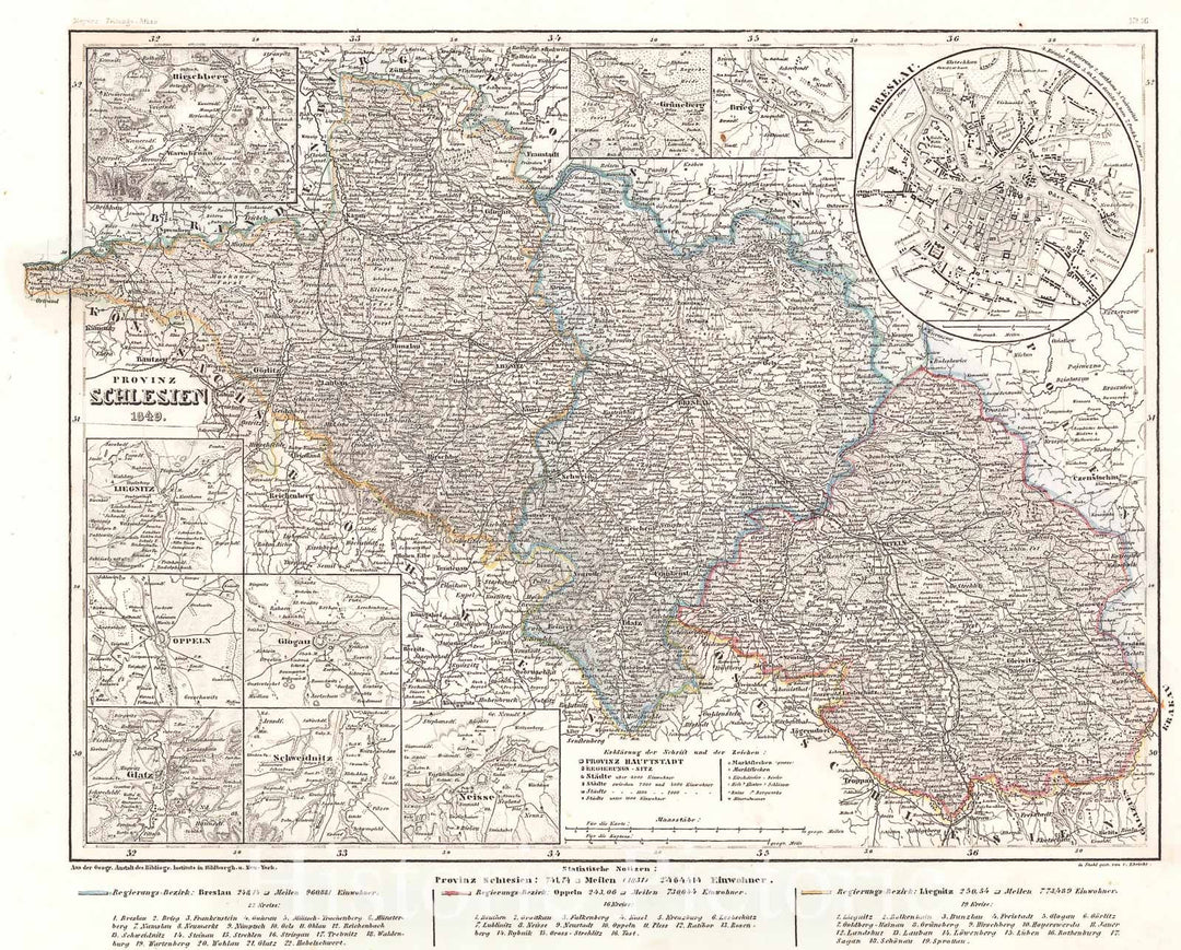 Historic Map : Meyer Map of The Province of Silesia, Poland, 1849, Vintage Wall Art