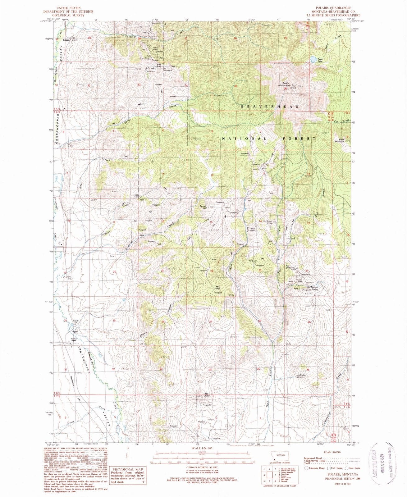 1988 Polaris, MT - Montana - USGS Topographic Map