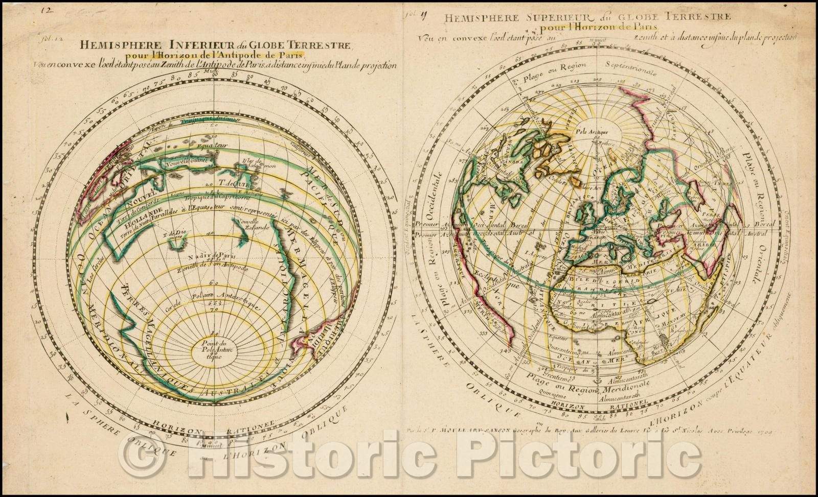 Historic Map - Hemisphere Inferieur du Globe Terreste pour l'Horizon de l'Antipode de :: Polar projections of the World, horizon and Antipode of Paris, 1697 - Vintage Wall Art