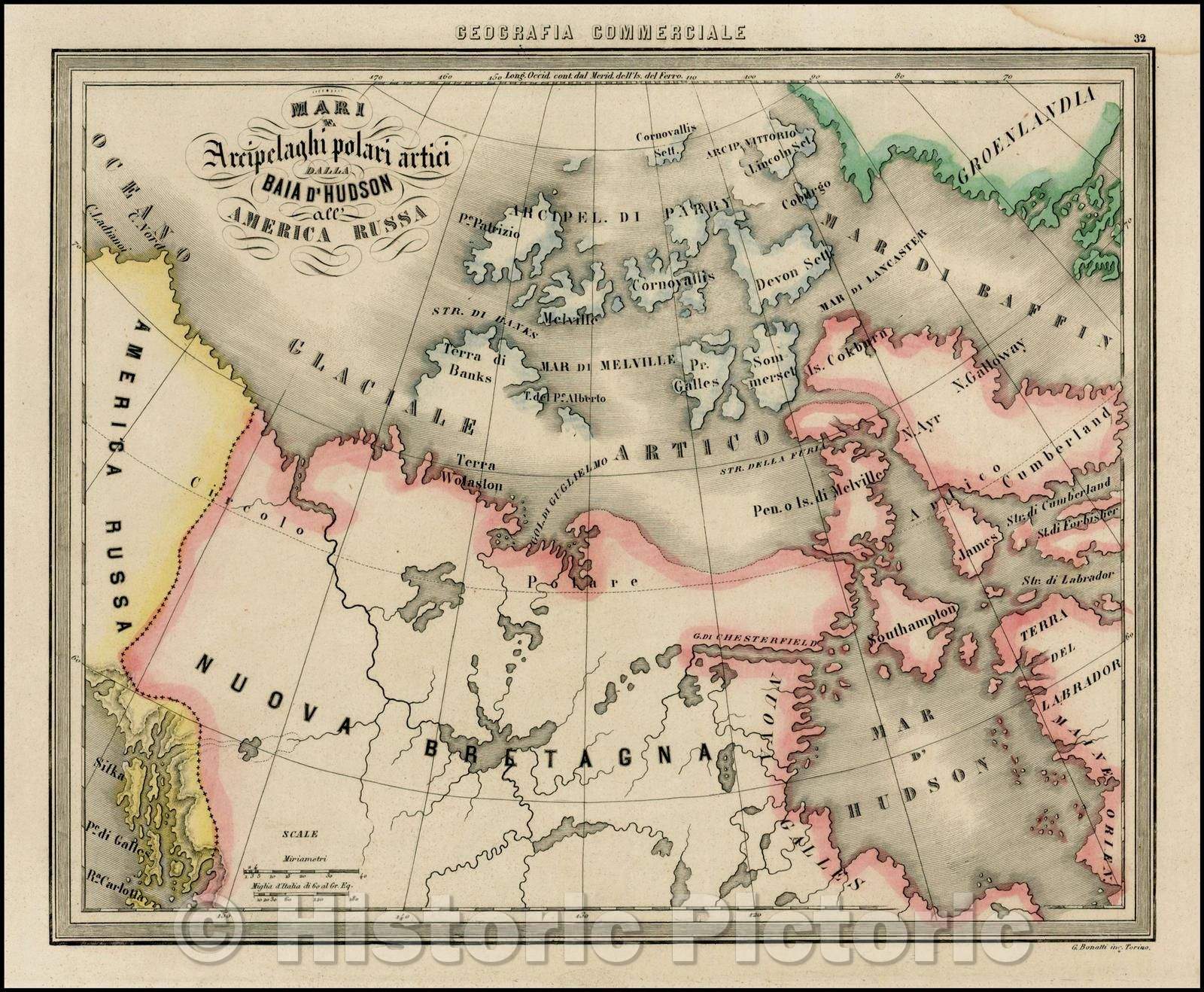 • .Historic Map - Mari Archipelaghi polari artici Dalla Baia D'Hudson all America Russa, 1858, Francesco Marmocchi v1