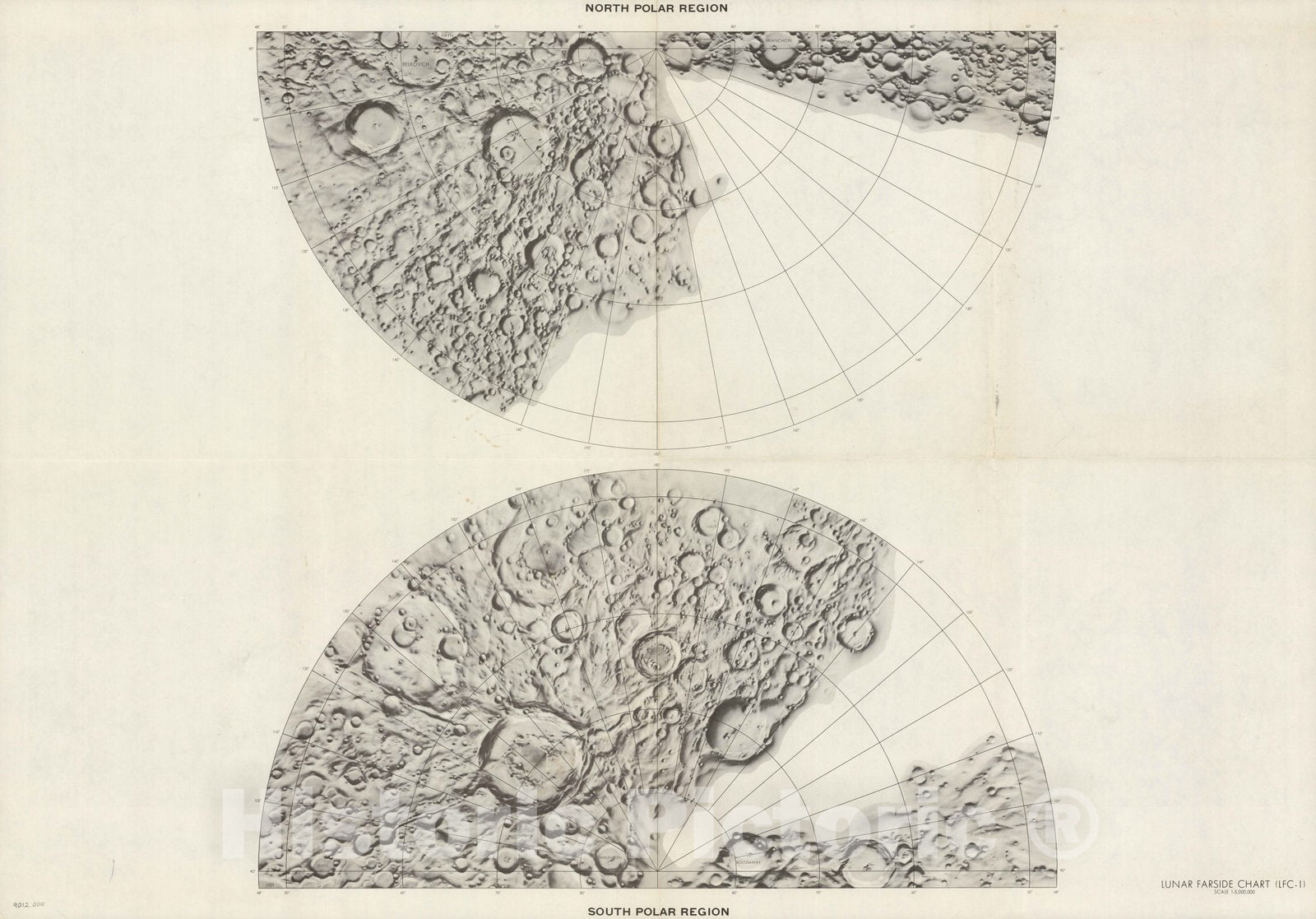 Historic Map : North Polar Region. South Polar Region. Lunar Farside Chart. (LFC-1). 1967 - Vintage Wall Art