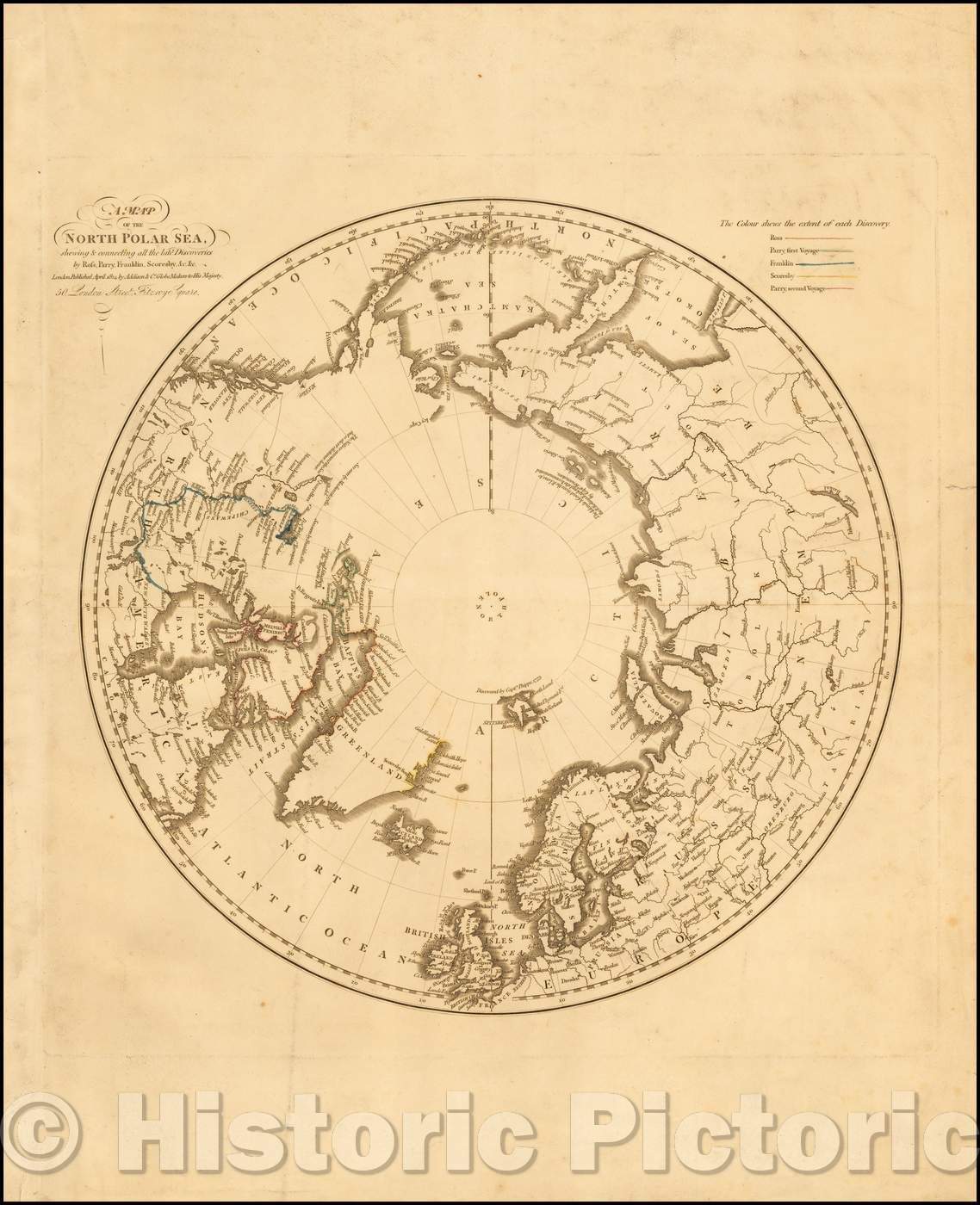• .Historic Map - North Polar Sea, shewing & connecting all the latest Discoveries, 1824, Addison & Co. - Vintage Wall Art
