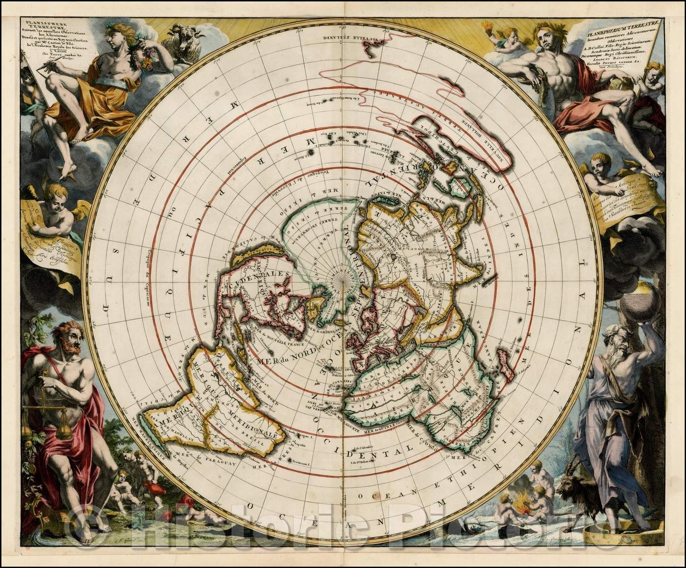 Historic Map - Planisphere Terrestre Suivant les nouvelle Observations des Astronomes D/Vander Aa's Map of World, Cassini's north polar projection, 1713 - Vintage Wall Art
