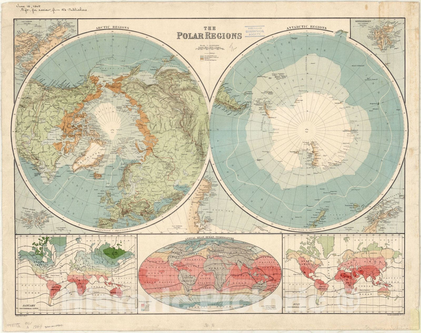 Map : Polar Regions 1908, The Polar regions , Antique Vintage Reproduction