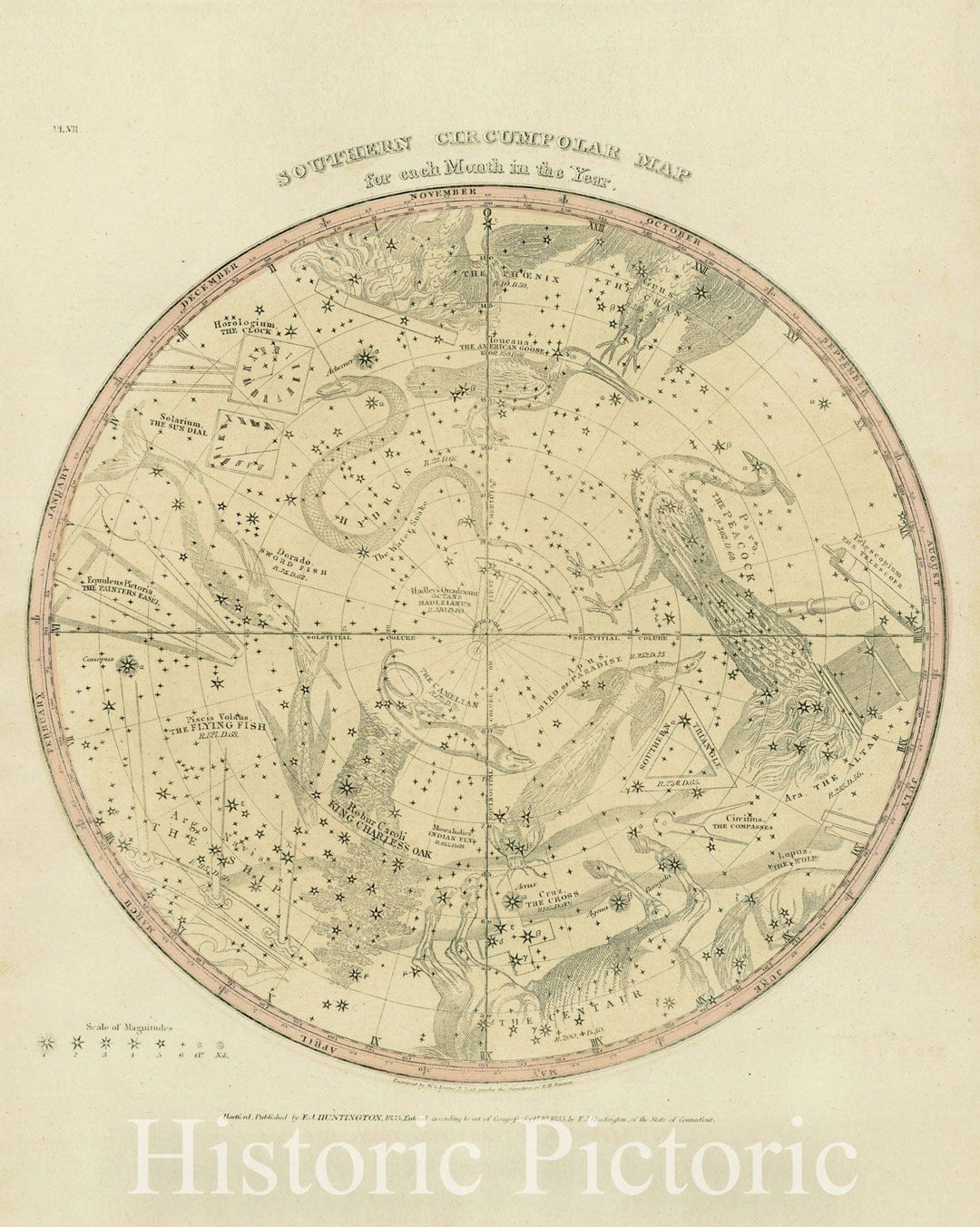 Historic Map : Southern Circumpolar Map for each month of the Year, 1835, Elijah J. Burritt, v4, Vintage Wall Art